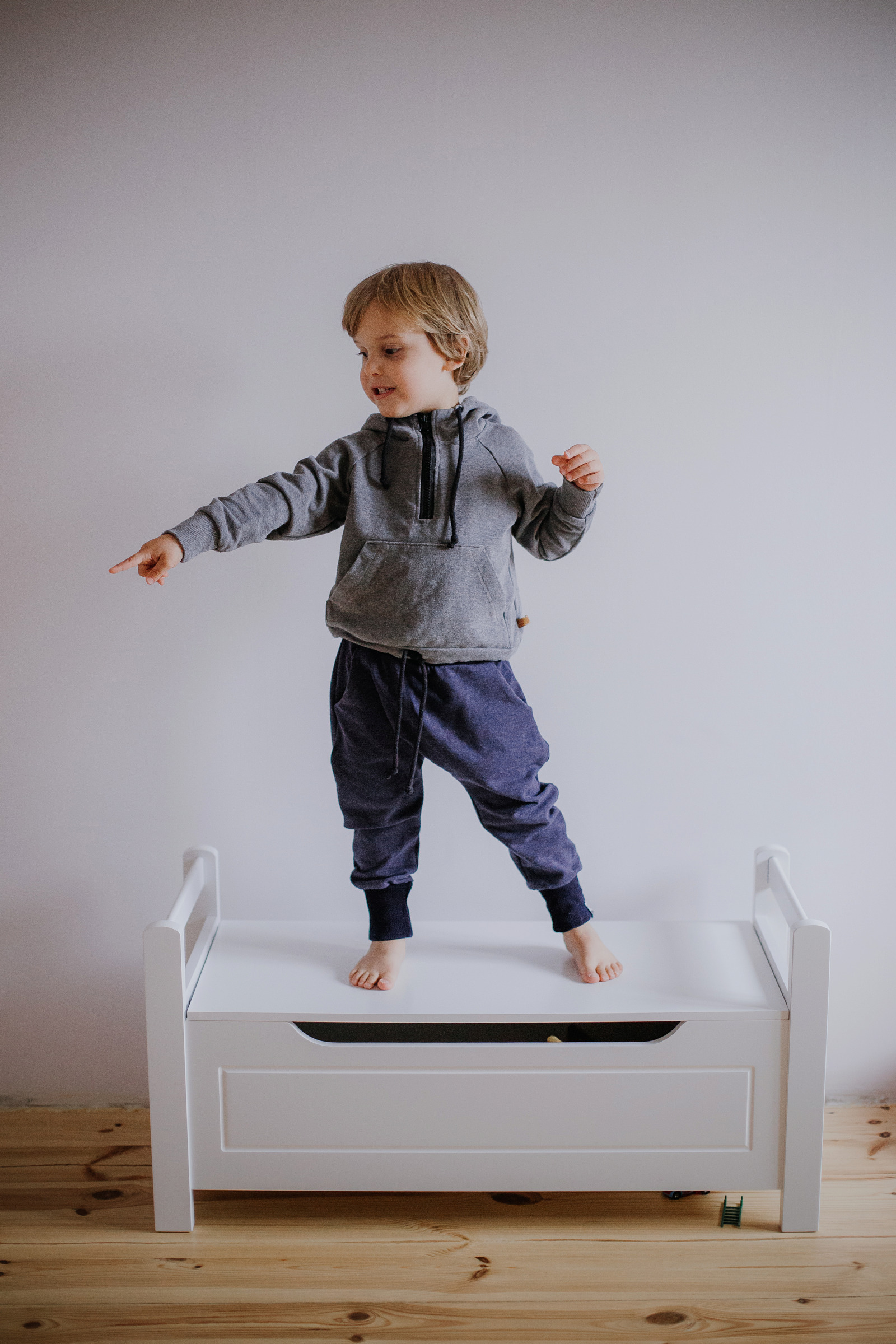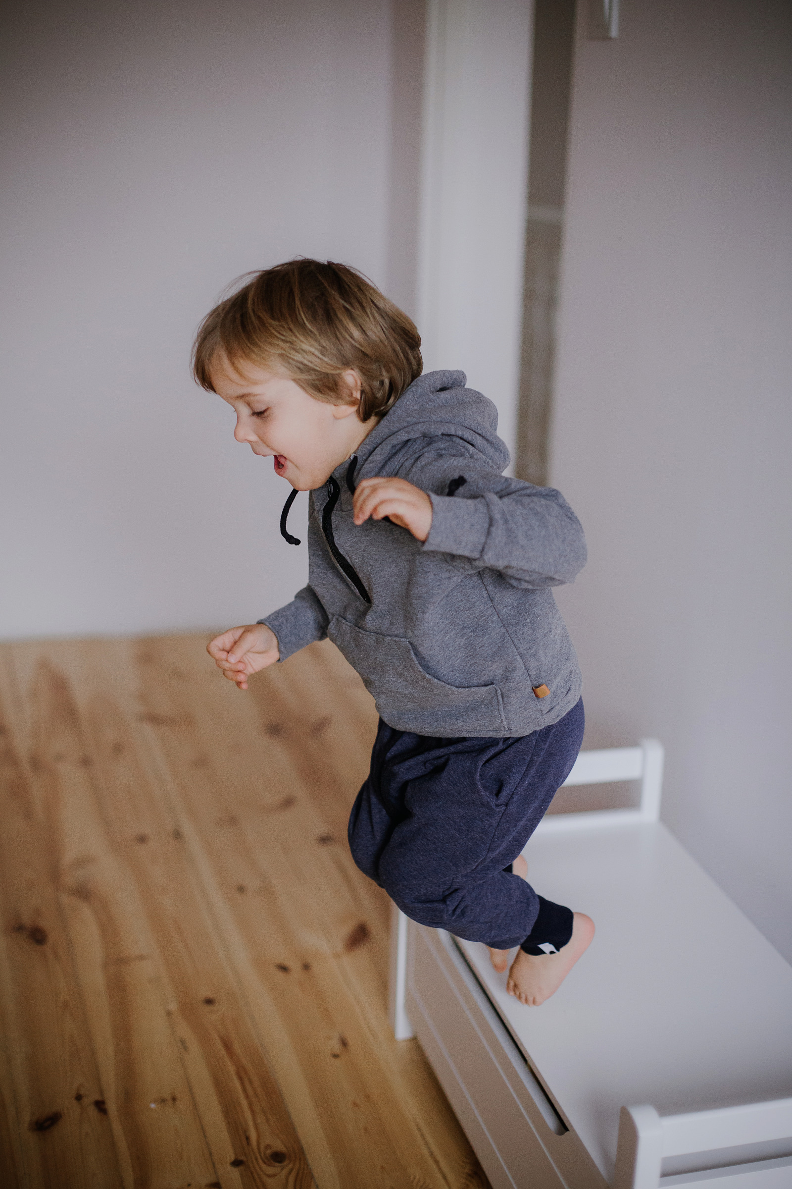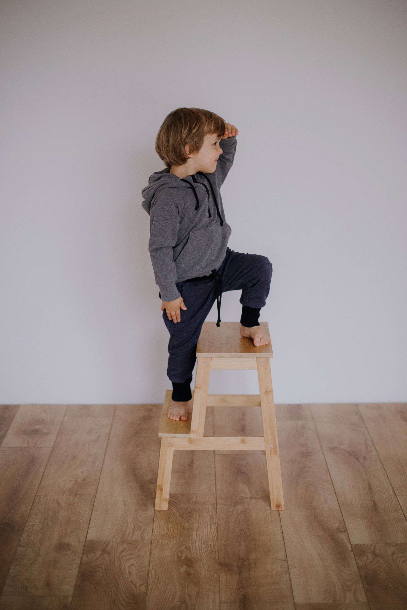 Baggy pants that grow with your child. Buy a larger size and modify the length by rolling the cuffs. Elastic and soft waistband adheres perfectly but doesn’t squeeze. Loose cut is amazingly functional and doesn’t restrict movement. These pants come in more colors. Black, gray, energetic fuchsia or subdued mustards and browns! Choose a color that matches your mood! This model has two pockets on the sides and one hidden at the back that will hold all your child’s treasures. Made of medium thickness cotton, it can be worn whole year round. Perfect for autumn, spring or colder summer days, but they will also be great for kindergarten in winter. Choose your color and have fun.