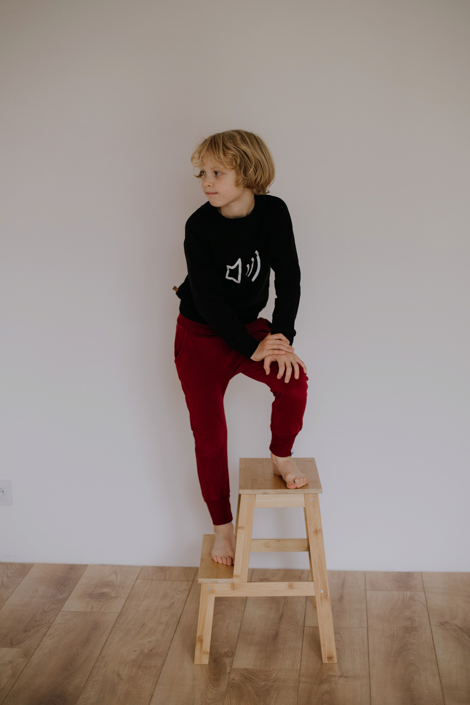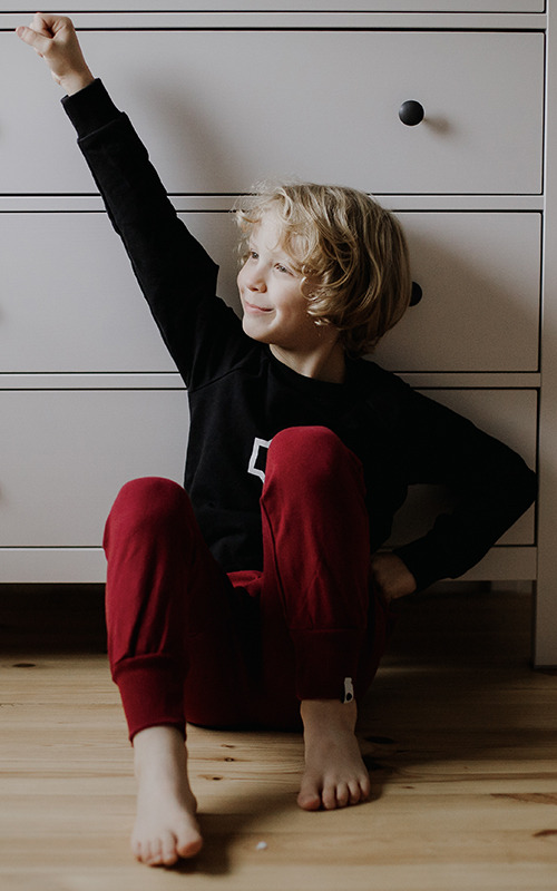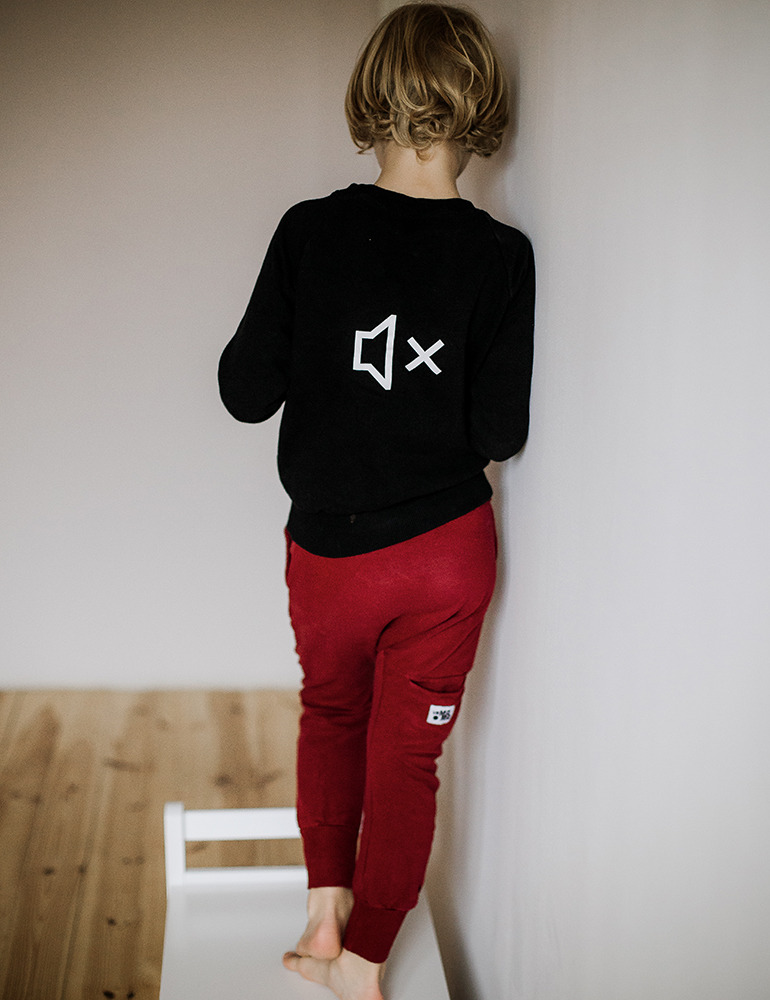Baggy pants that grow with your child. Buy a larger size and modify the length by rolling the cuffs. Elastic and soft waistband adheres perfectly but doesn’t squeeze. Loose cut is amazingly functional and doesn’t restrict movement. These pants come in more colors. Black, gray, energetic fuchsia or subdued mustards and browns! Choose a color that matches your mood! This model has two pockets on the sides and one hidden at the back that will hold all your child’s treasures. Made of medium thickness cotton, it can be worn whole year round. Perfect for autumn, spring or colder summer days, but they will also be great for kindergarten in winter. Choose your color and have fun.