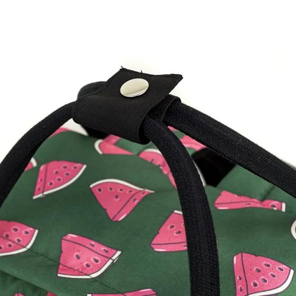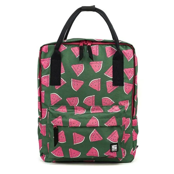 The backpack has two handles that, when fastened, allow you to wear the backpack as a bag.