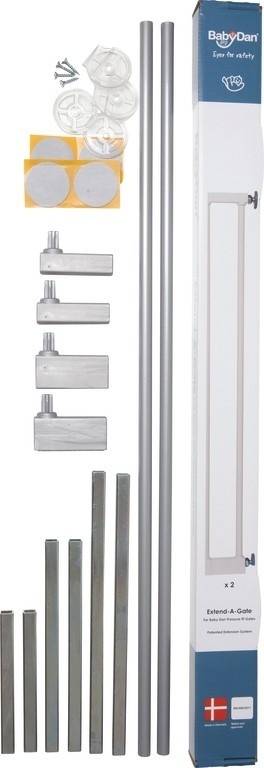 Baby Dan - Avantgarde and Designer gate extension. Enables theAVANTGARDE gate to reach 117.1 cm of width andDESIGNER gate to reach 95.6 cm of width.The extension makes AVANTGARDE and DESIGNER gates possible to be mounted in passages with greater widths.