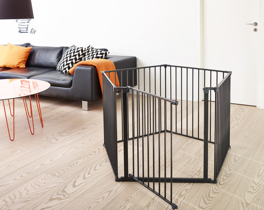 Flex XXL consists of an openable gate (72 cm), five 72 cm wide panels and wall mounts. The gate and panels can be aligned in every combination and angle. Can be upgraded with unlimited number of panels (33 cm and 72 cm widths available). Can be upgraded with unlimited number of gates (72 cm wide). Flex XXL can be used for wide stairways or passages protection. Can be used for passages from 90 to 350 cm wide. Easily closed and opened with one hand. Exceptionally easy to mount and demount. When the wall mounts are fixed, mounting and demounting takes brief seconds. Requires drilling (no rawplugs in set!). Foldable to reduce the space needed when not in use. 71 cm of height. Suitable for children up to 2 years of age. Fulfills european safety directive EN 1930:2011 Made in Denmark 2 years guarantee