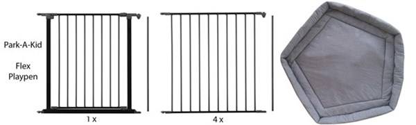 - Delivered with 5 sections: a 72 cm wide gate and four 72 cm wide panels.