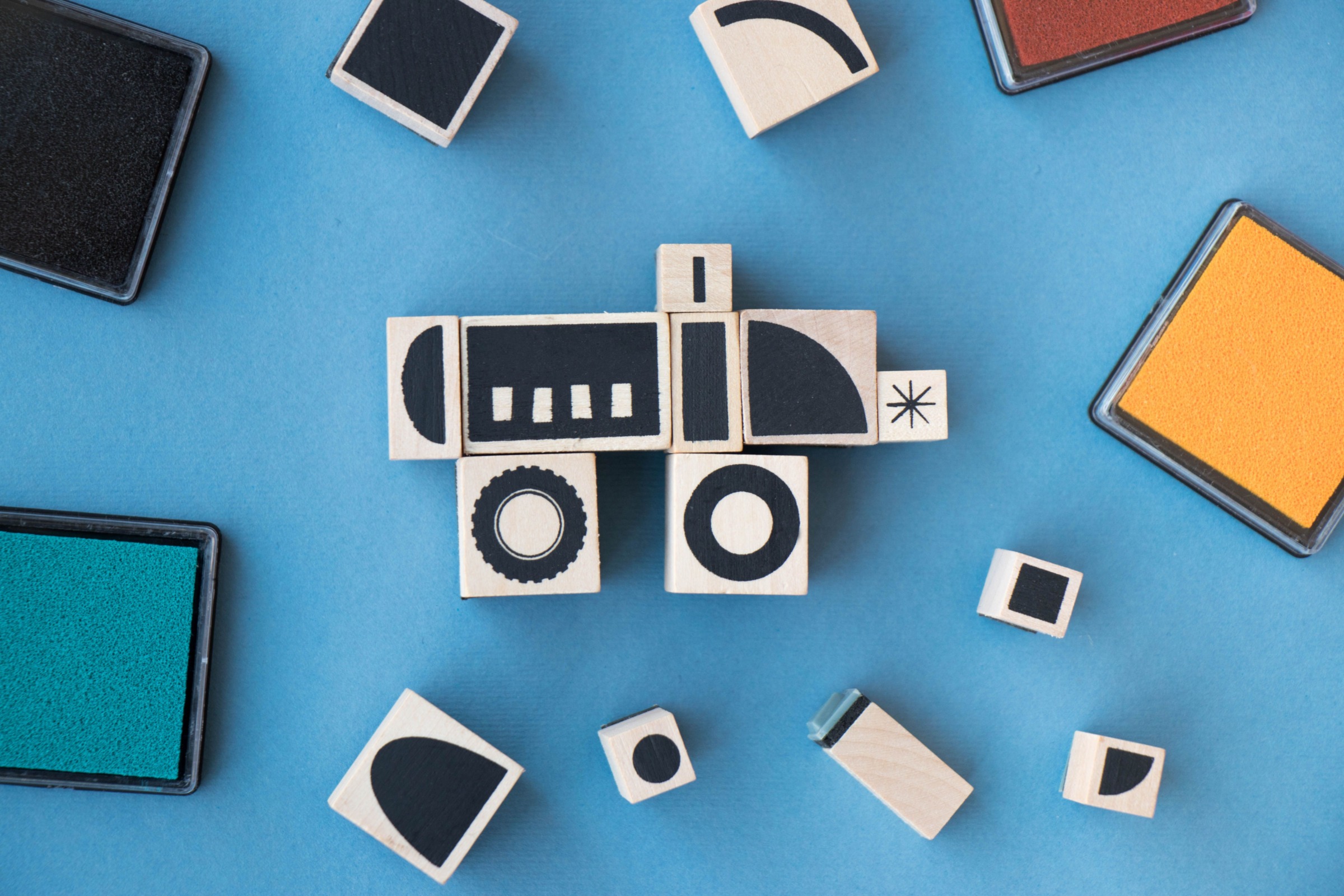 A creative car activity with stamps! Let out the artist inside. Combine colours and shapes, and show off your work.