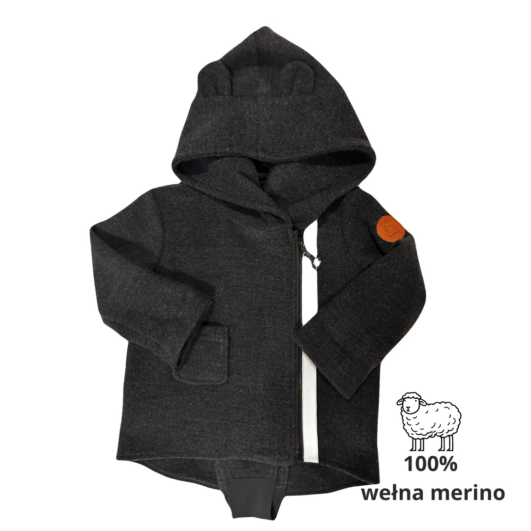 The Miapka jacket is made of 100% certified merino wool, soft to the touch and friendly for children’s sensitive skin, including those with allergies. Merino wool provides excellent temperature regulation, warming without overheating, wicks moisture, and resists odors. Key features include:
