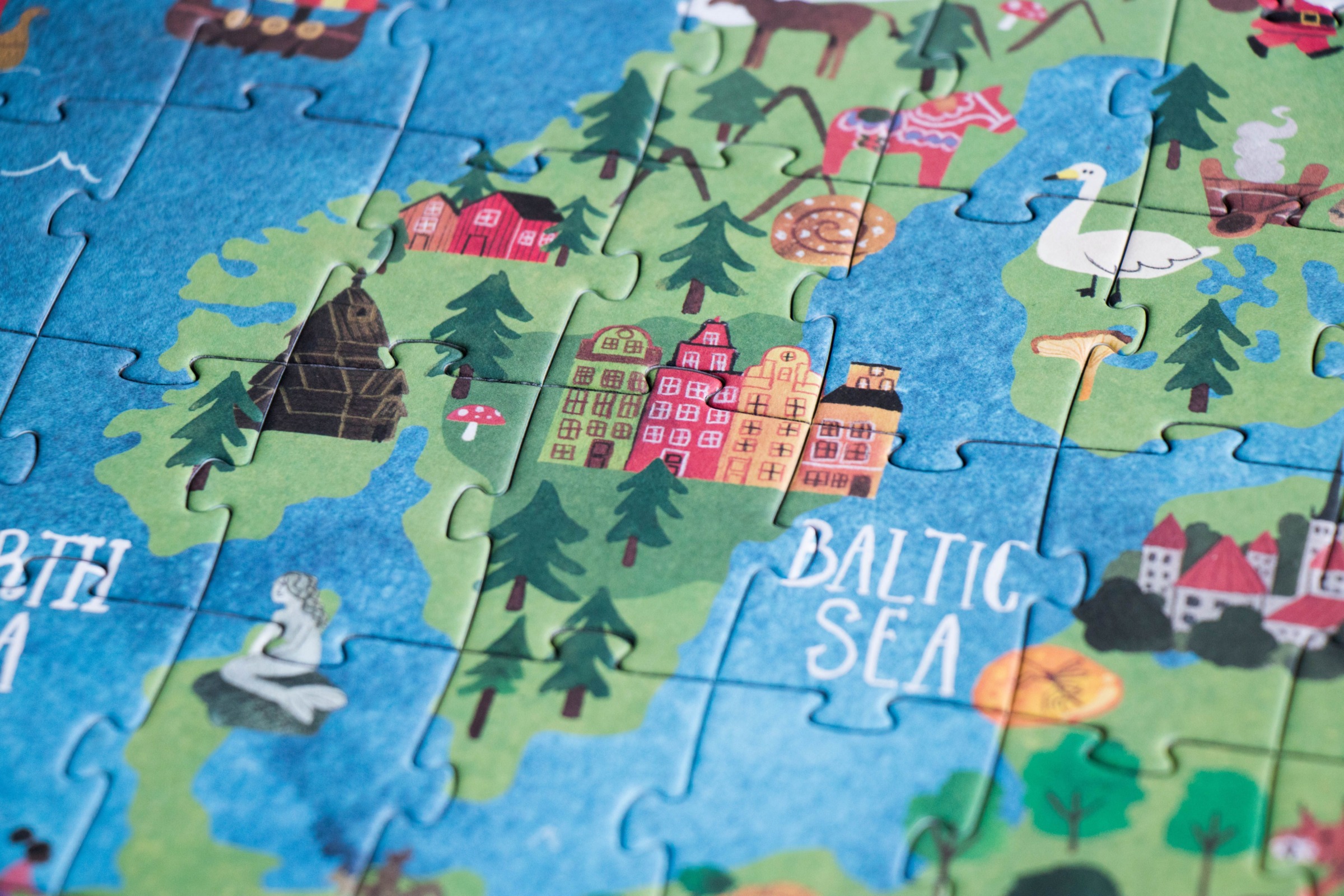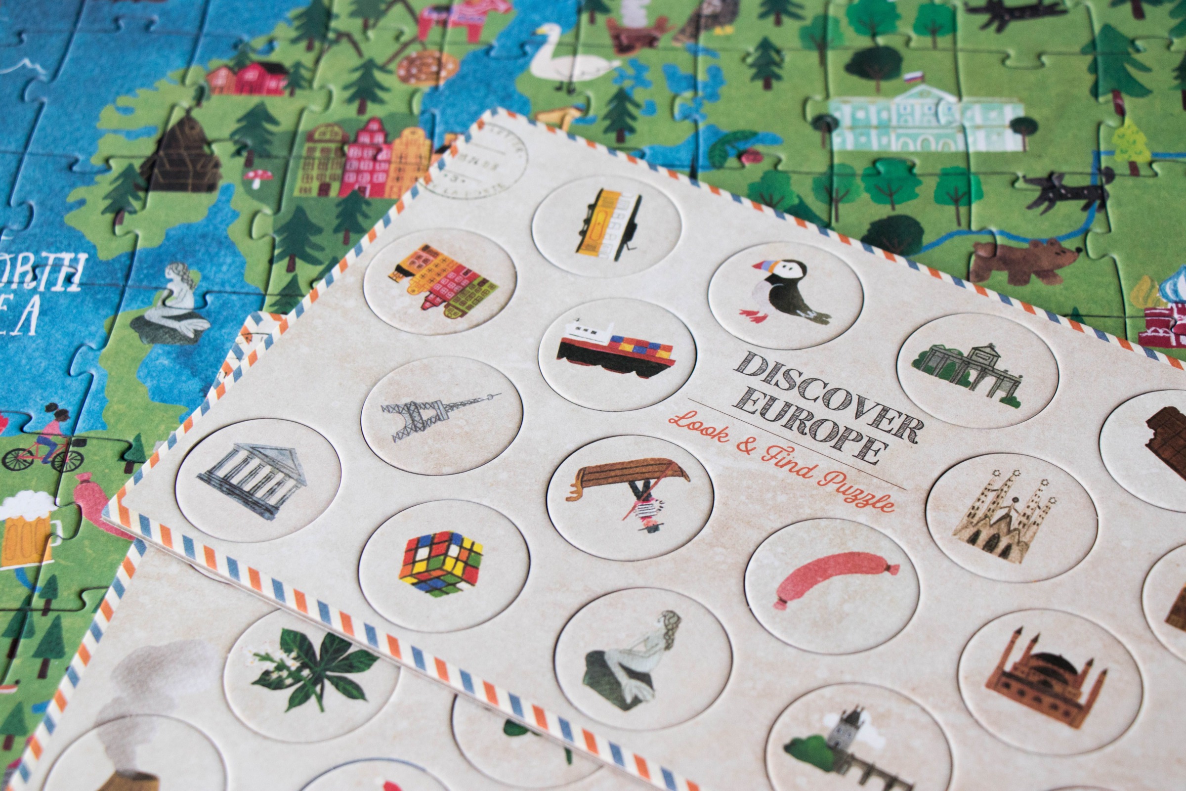 A 200-piece puzzle and 34 observation cards of a map of the European continent. For girls and boys over the age of 7. A sustainable toy.