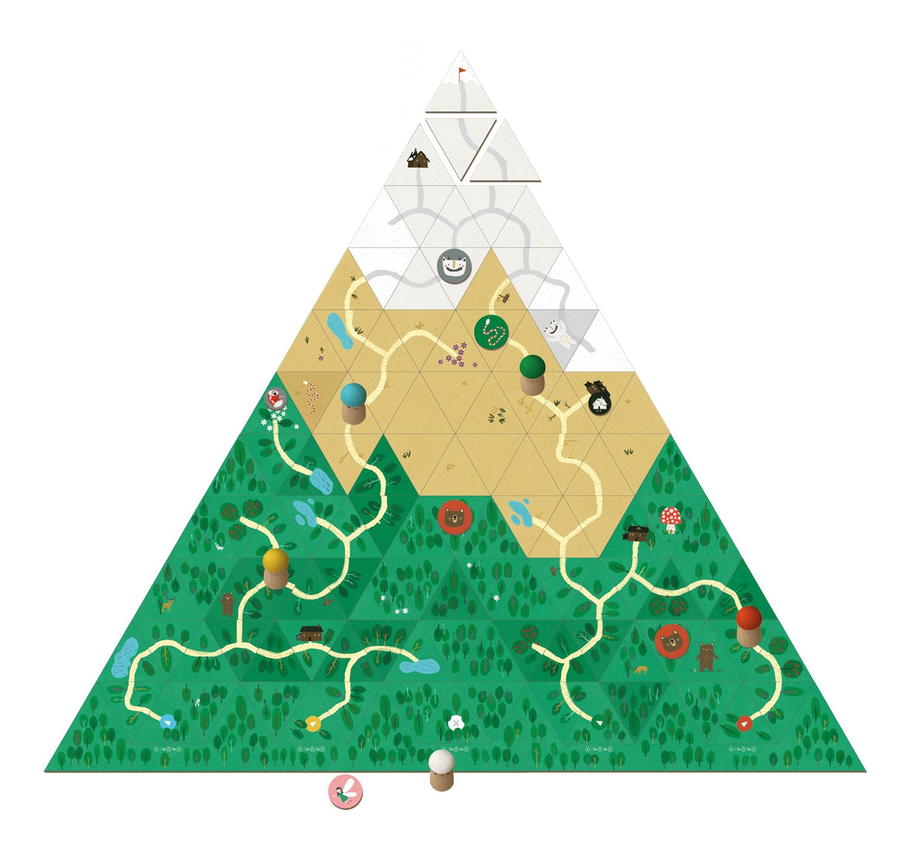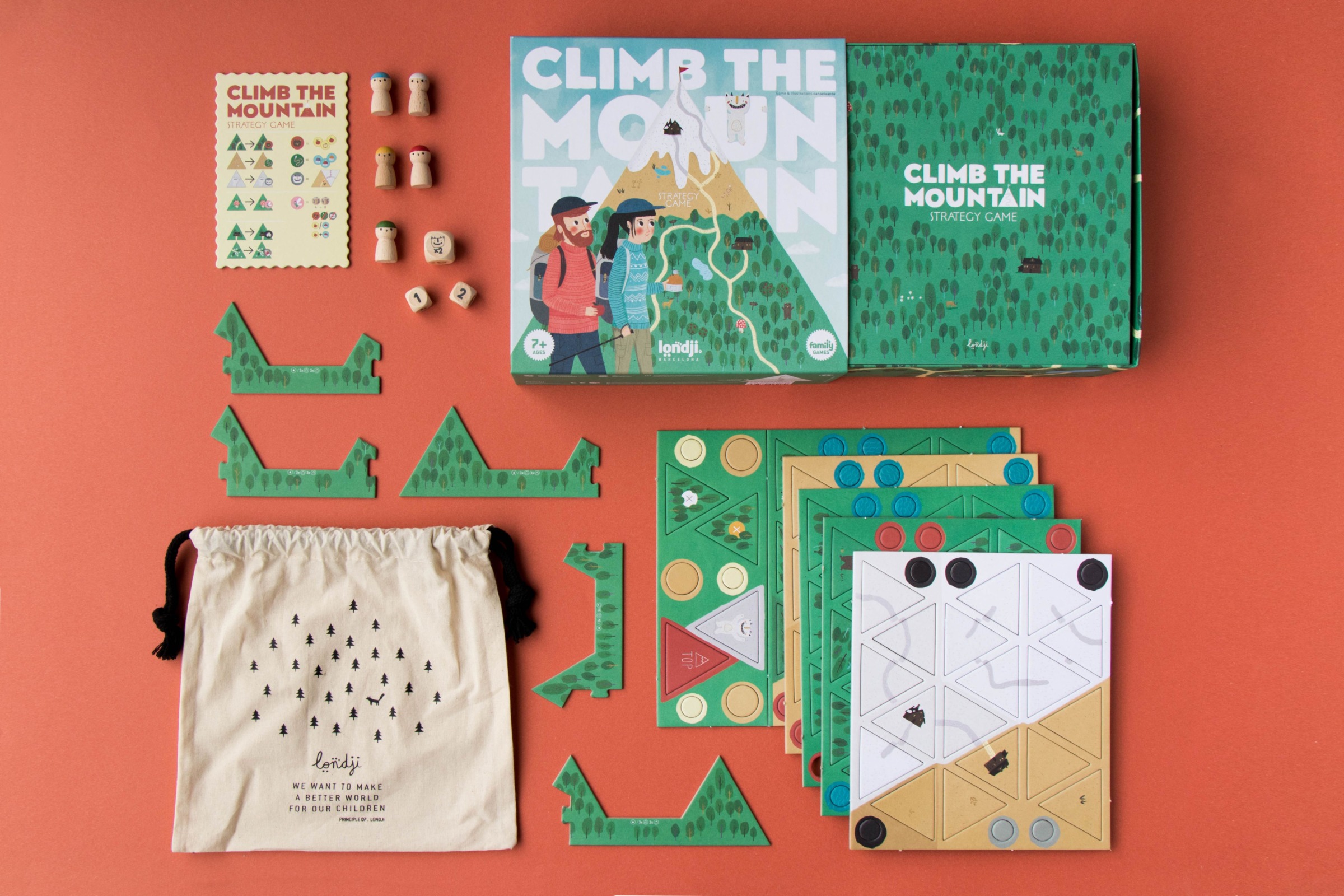 The objective is to be the first player to reach the top. In turn, the dice will indicate the number of pieces that can be added to the mountain, how many squares the climber can advance and if some of the dangerous animals that live in the mountain become activate. To travel to the top, we will need to find provisions and rest spaces to replenish our energy!