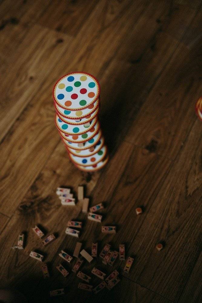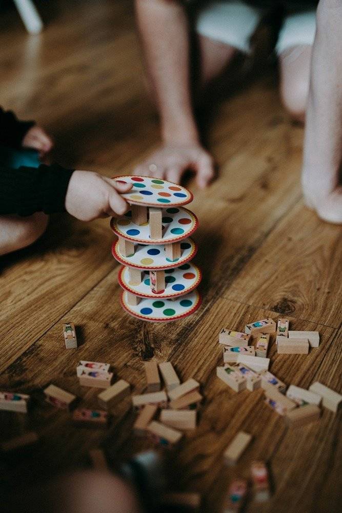 The goal of the game is to create the highest tower possible. The player who brings it down loses.