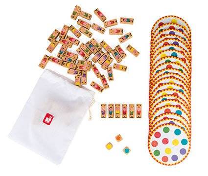 The arcade game Acrobats of the French brand JANOD is great fun for two to eight people - both children and adults. The set includes 20 boards made of solid cardboard, on which there are circles of different colors (10 on each) - they indicate the positions on which the acrobat figures should be placed - in each round, three, according to the colors, rolled on the dice. Each subsequent player builds the next level of the acrobatic tower. The goal of the game is to create the highest possible structure. The player who brings it down - loses