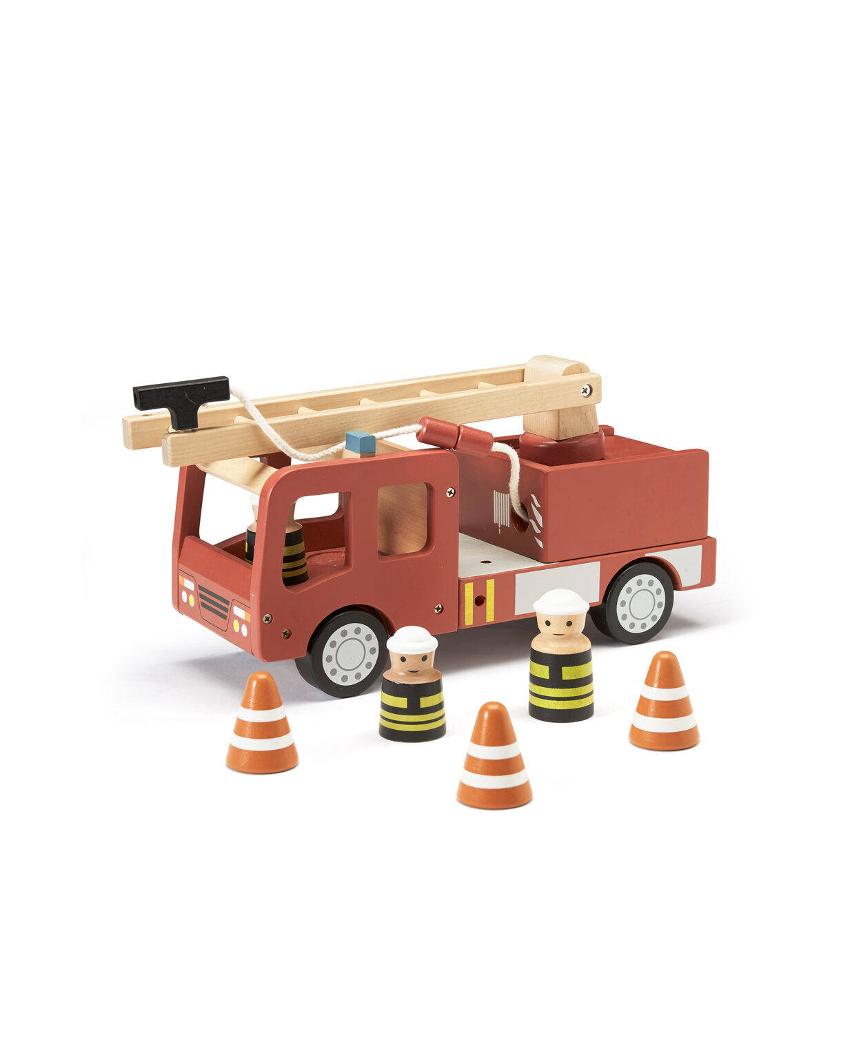 - Material: Fire truck: plywood, pine. Axle: stainless steel. Fire ladder, figurines, cones, wheels: schima. Fire hose: cotton.