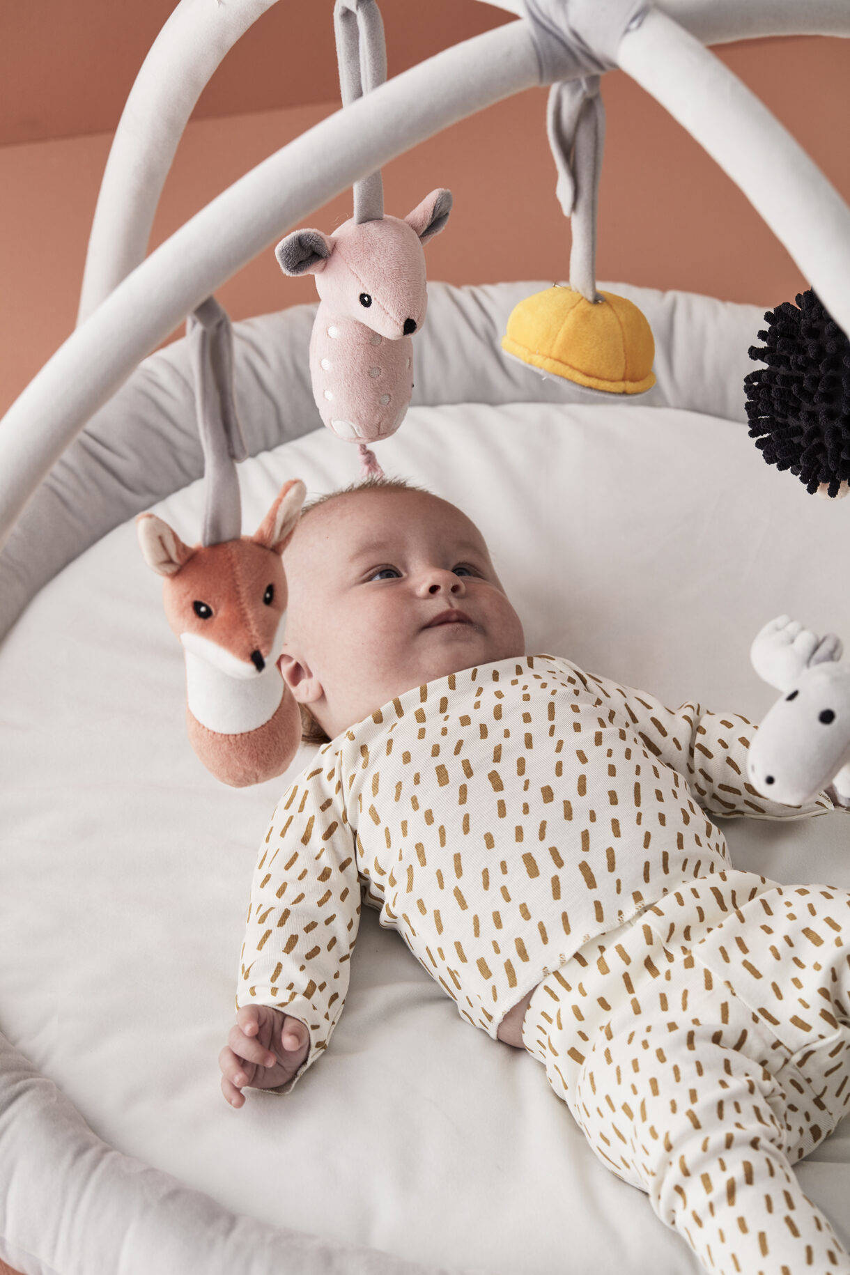 Forrest-inspired fun for your baby to touch and explore, including Bo the Moose, Edvin the fox, Stella the hedgehog and Tora the mouse. All favorites from our Edvin range. The baby gym also features an oval mirror and animal rattles to keep your child happy and entertained. The toys are easily attached with velcro