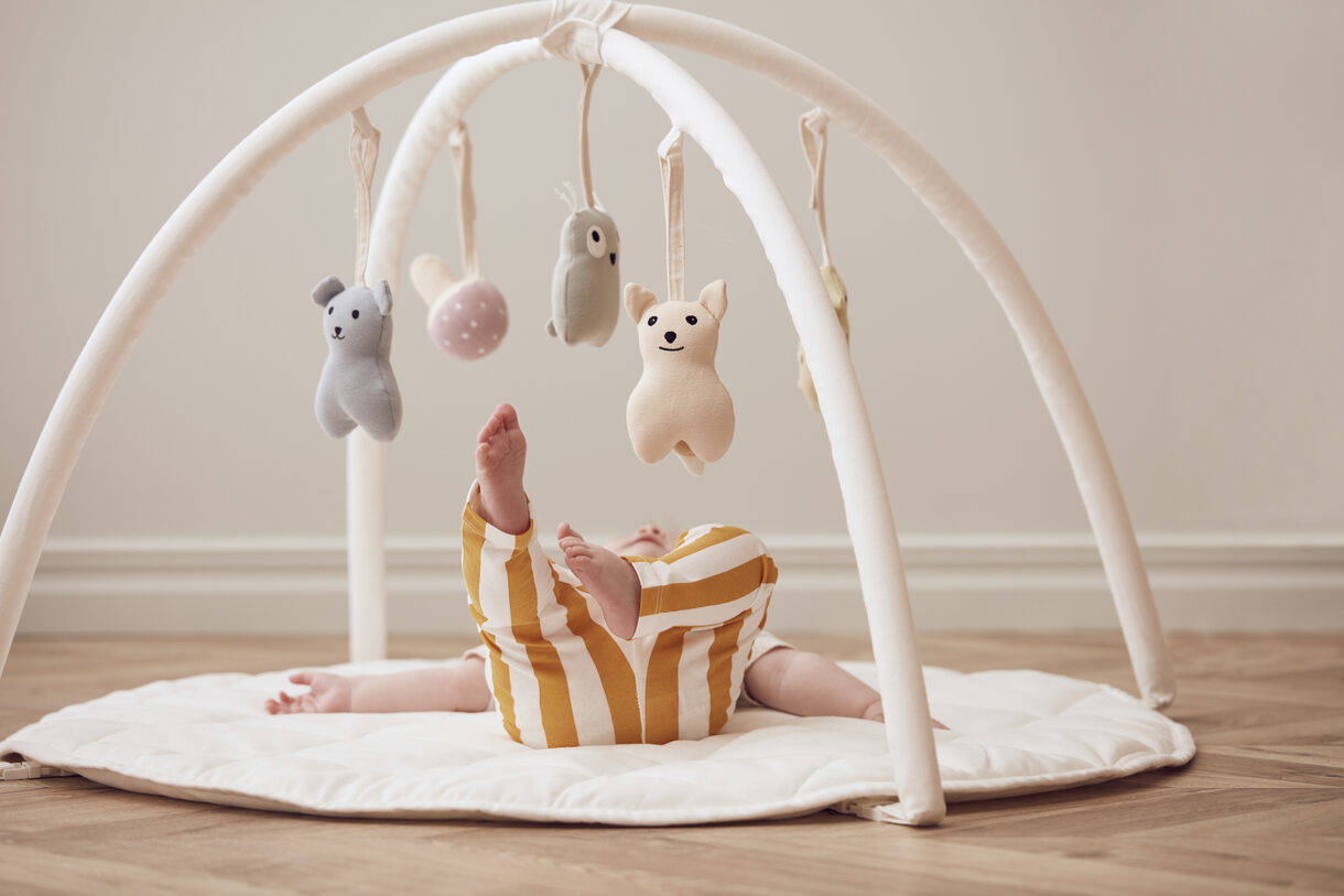 A classic off-white baby gym in a lovely thick cotton canvas which you can combine with any of our baby gym toys of your choice.