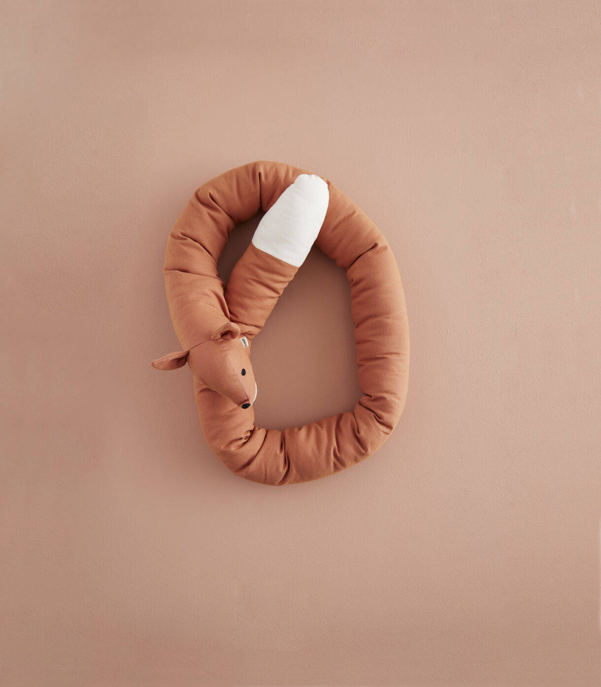 The cuddly long pillow in the shape of our fox Ed is functional item with multiuse.