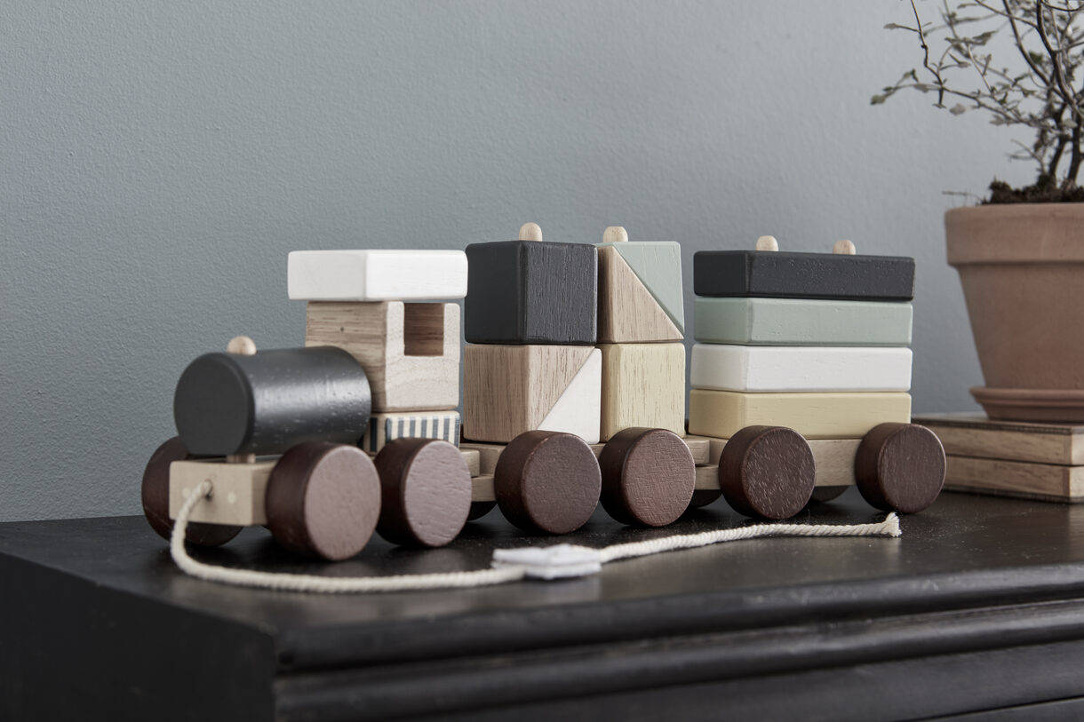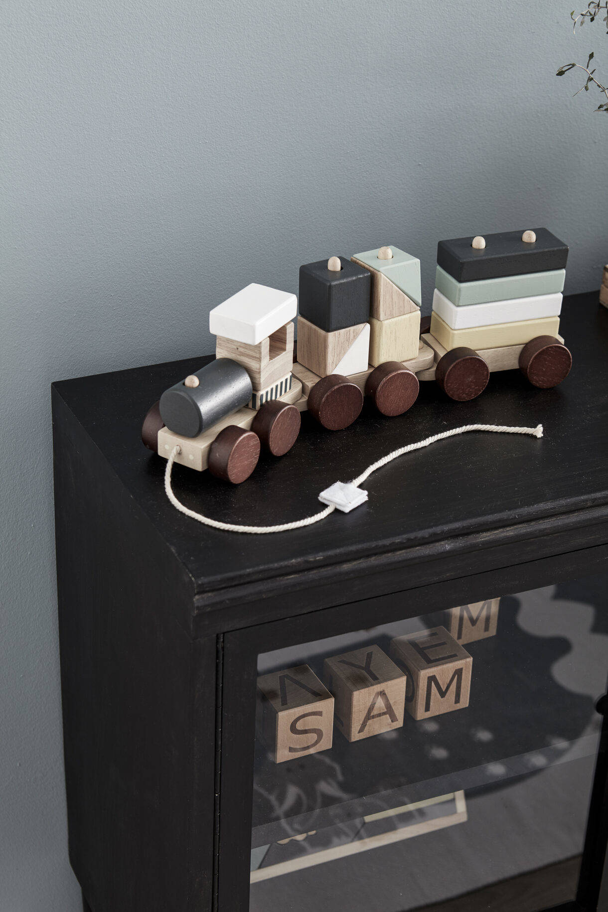 Wooden pull along train in natural wood and painted parts from our NEO concept.