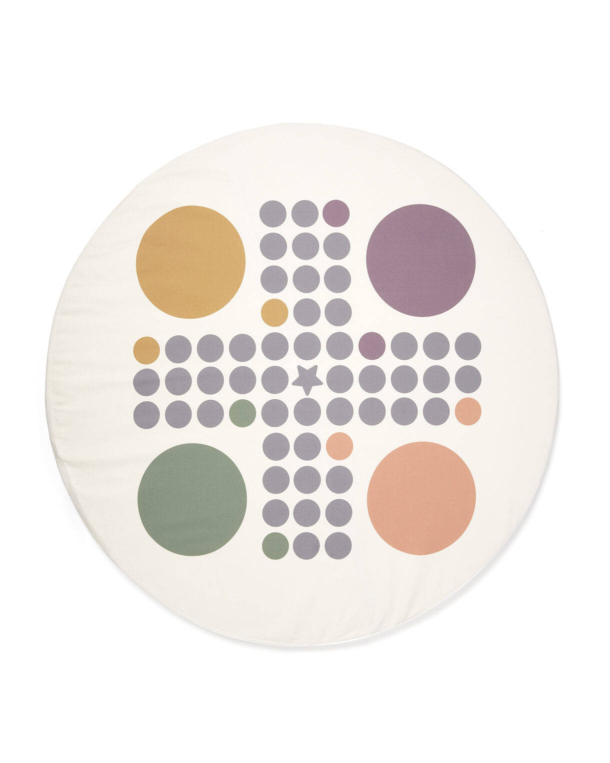 One side is plain, and the other has a printed ludo game. The floor cushion has a similar fabric as our cotton tents and fits perfectly to our tipi- and pavilion tents. Or use the mat as a part of a “cozy corner” in any room. The inner cushion is divided in four parts, so it makes it easy to fold and store when not in use. Removable and washable cover. Note: The play mat does not contain any game pieces. We like to encourage the imagination – cut out game pieces in sturdy paper or cardboard or find any Lego figures, pebbles, favorite objects at home and game on! Don't forget to find your favorite lucky dice as well.