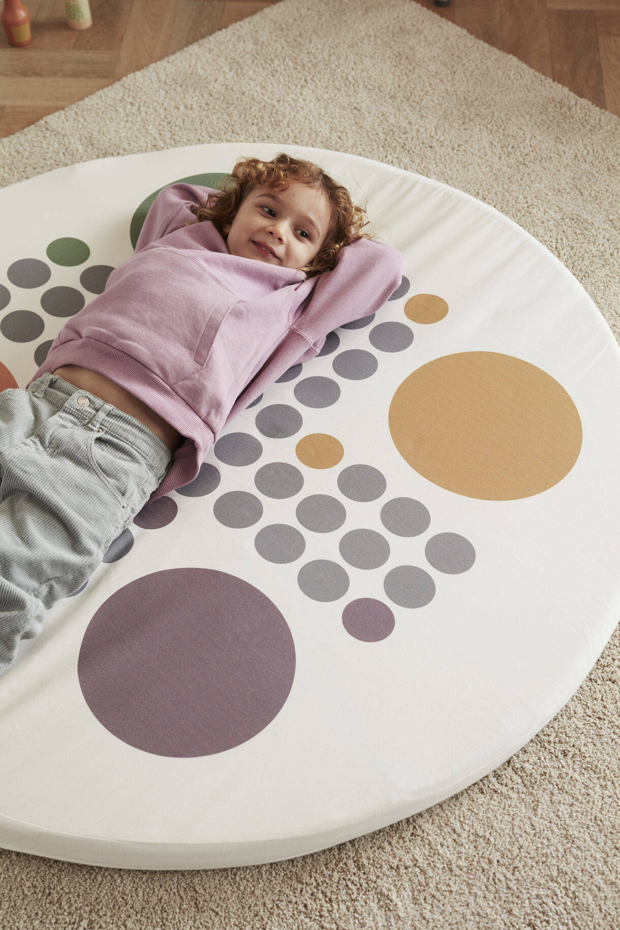 A reversible floor cushion in sturdy cotton canvas. Perfect to use as a play mat or turn around for a ludo game.