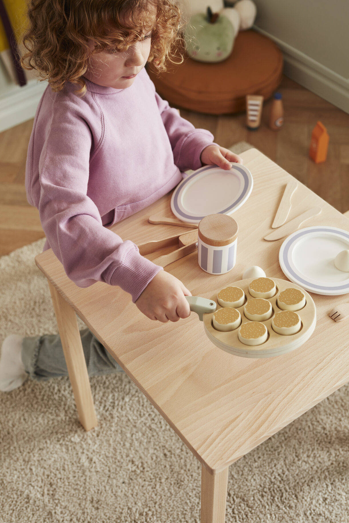 All you need is a bit of imagination and this ingenious toy, and in a moment you will have Swedish mini pancakes, called plättar, on your table. They are traditionally served with jam or fresh berries, and you can also add whipped cream.