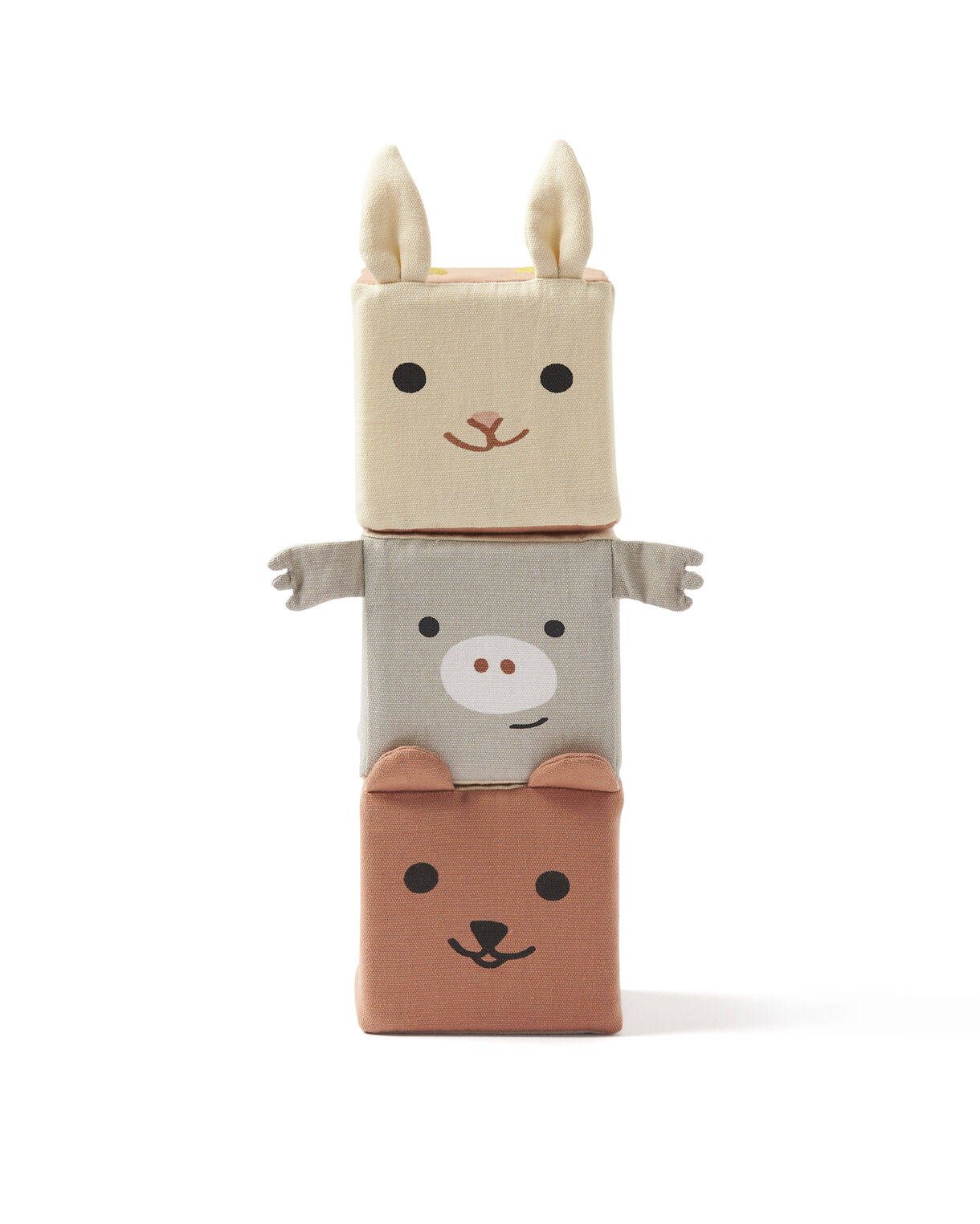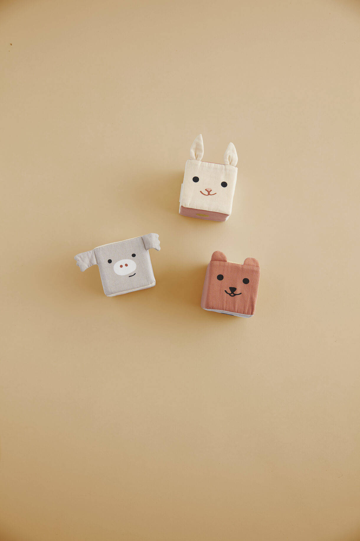 A set of three large, soft blocks with animals made of durable eco-cotton.