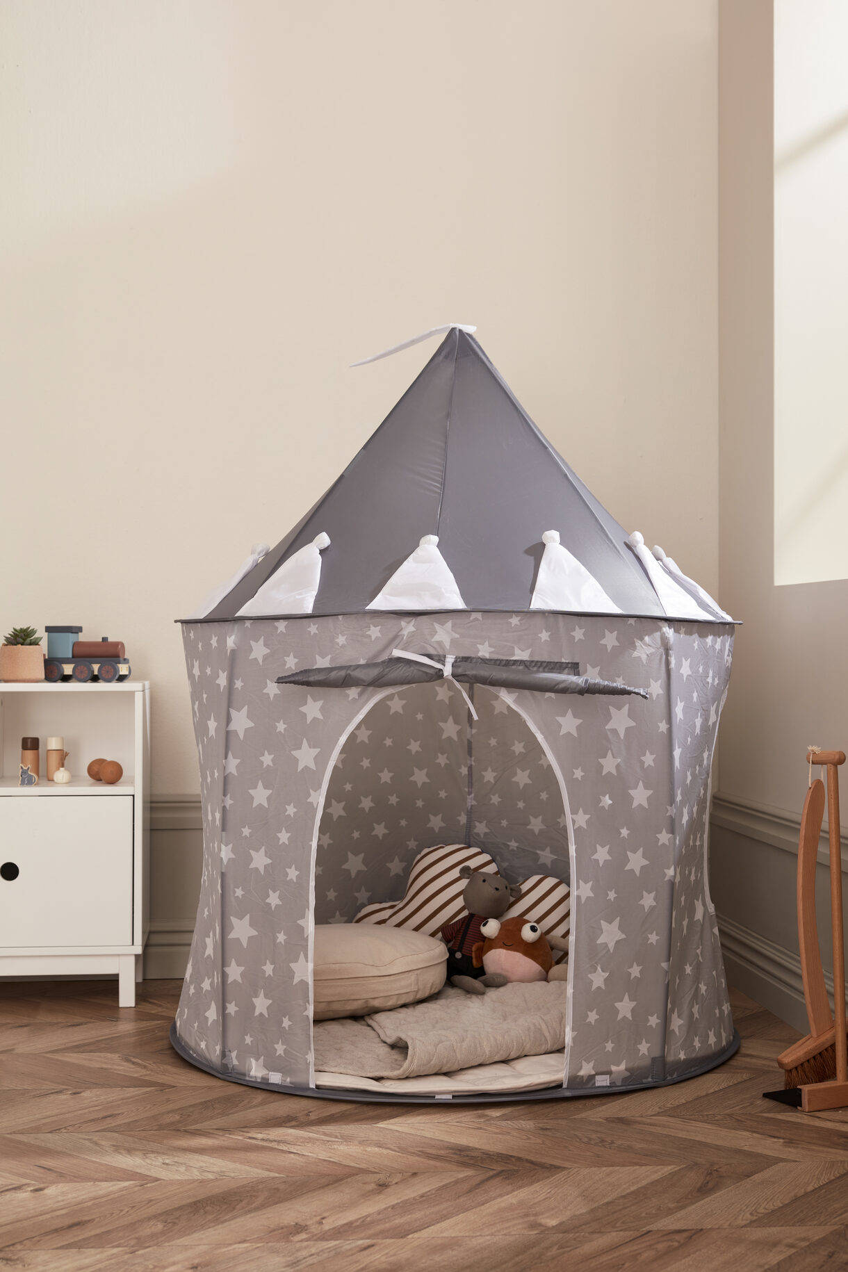 The play tent is an imaginative playground for children of all ages. With its detailed design including stars and a bunting garland hanging from the ceiling, it's a perfect place to play, dream, and use their imagination.
