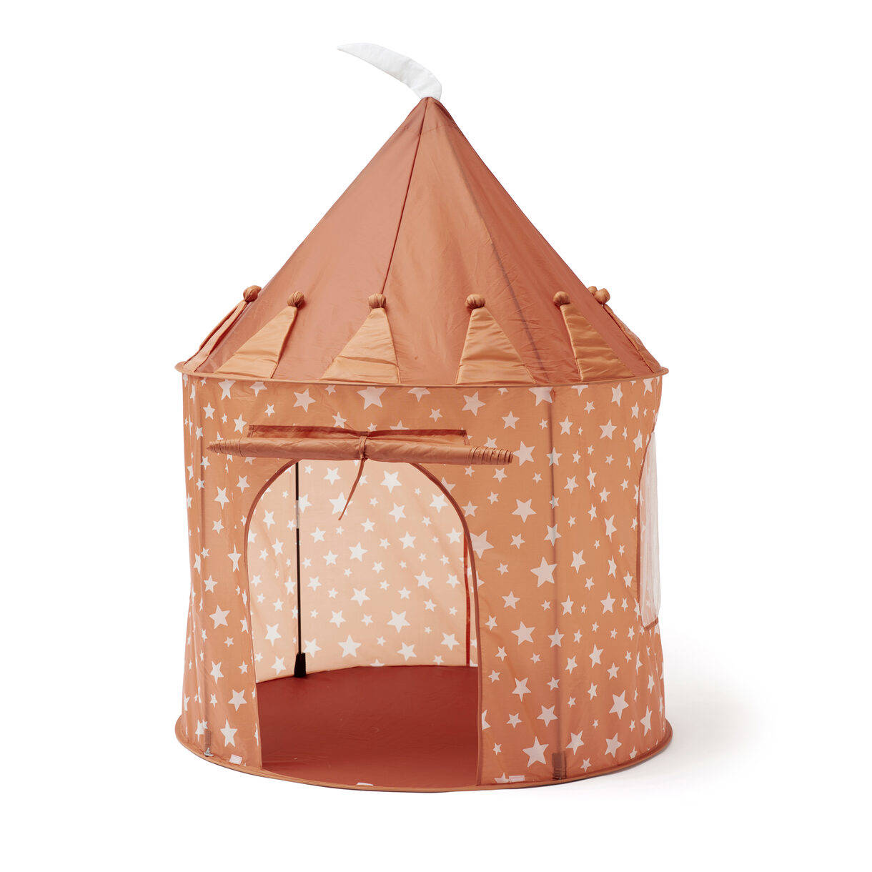 The play tent is an imaginative playground for children of all ages. With its detailed design including stars and a bunting garland hanging from the ceiling, it's a perfect place to play, dream, and use their imagination.