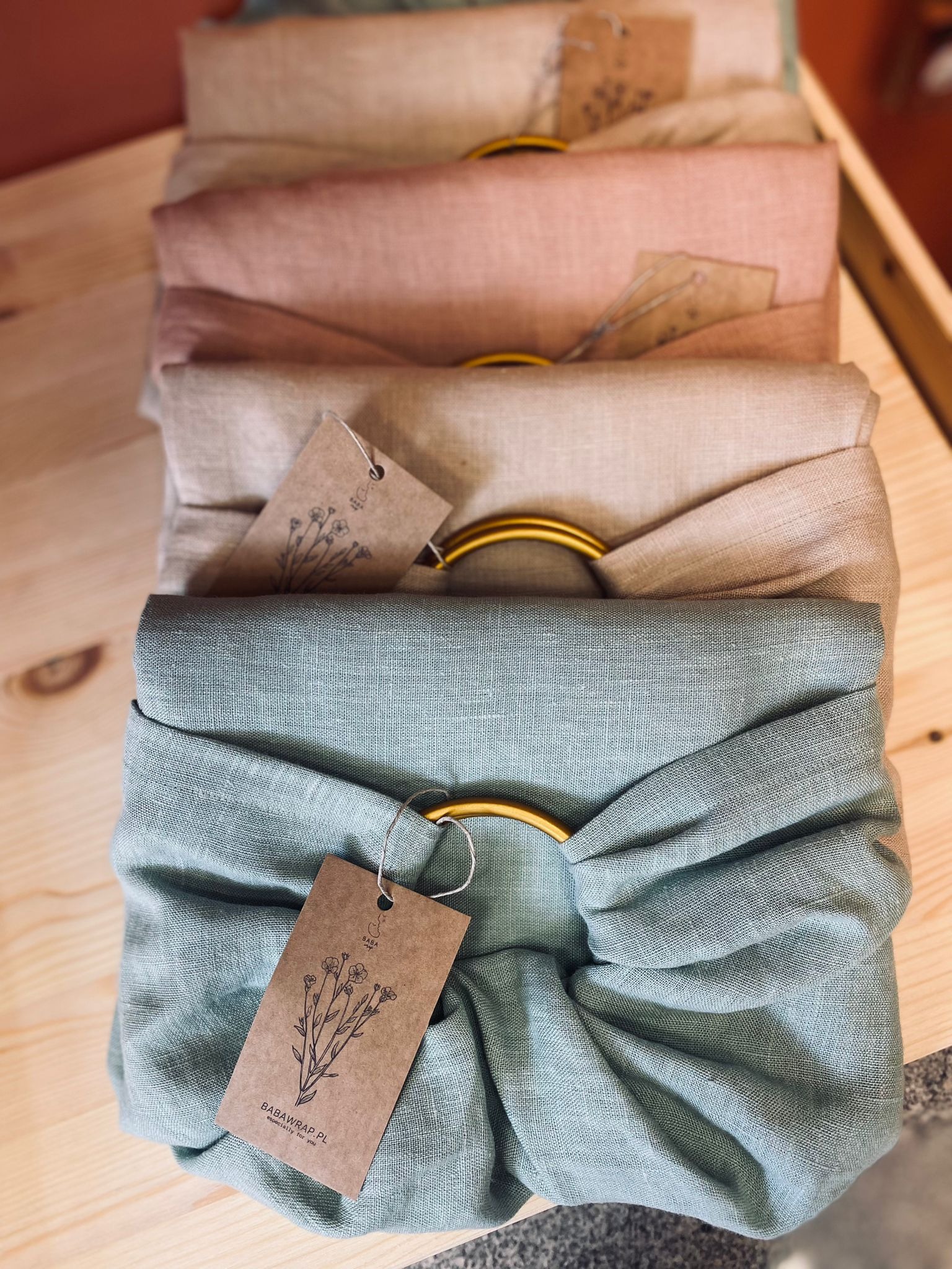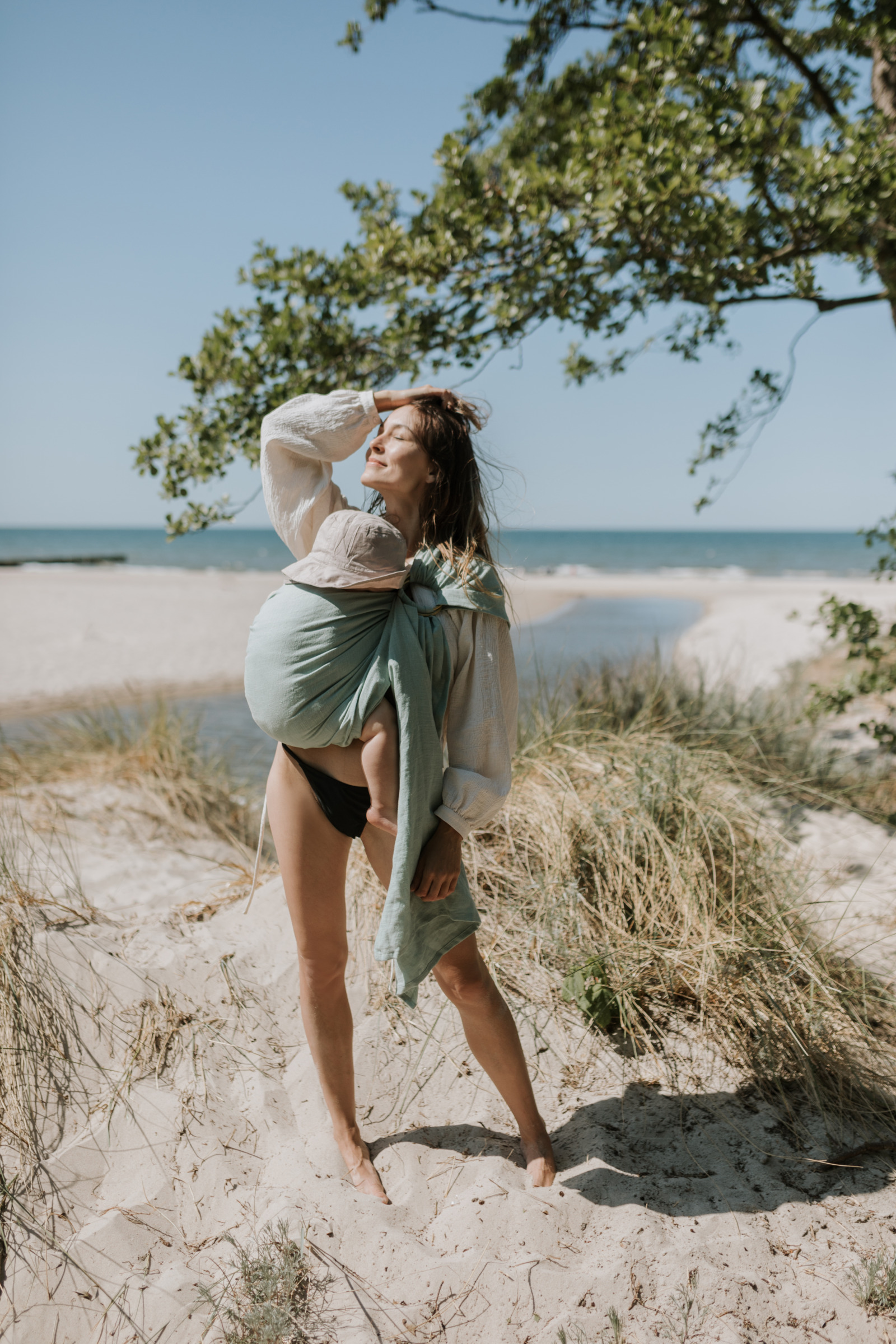 100% Linen Ring Sling in a beautiful sage color. The newest addition to our collection that has captured the hearts of parents.