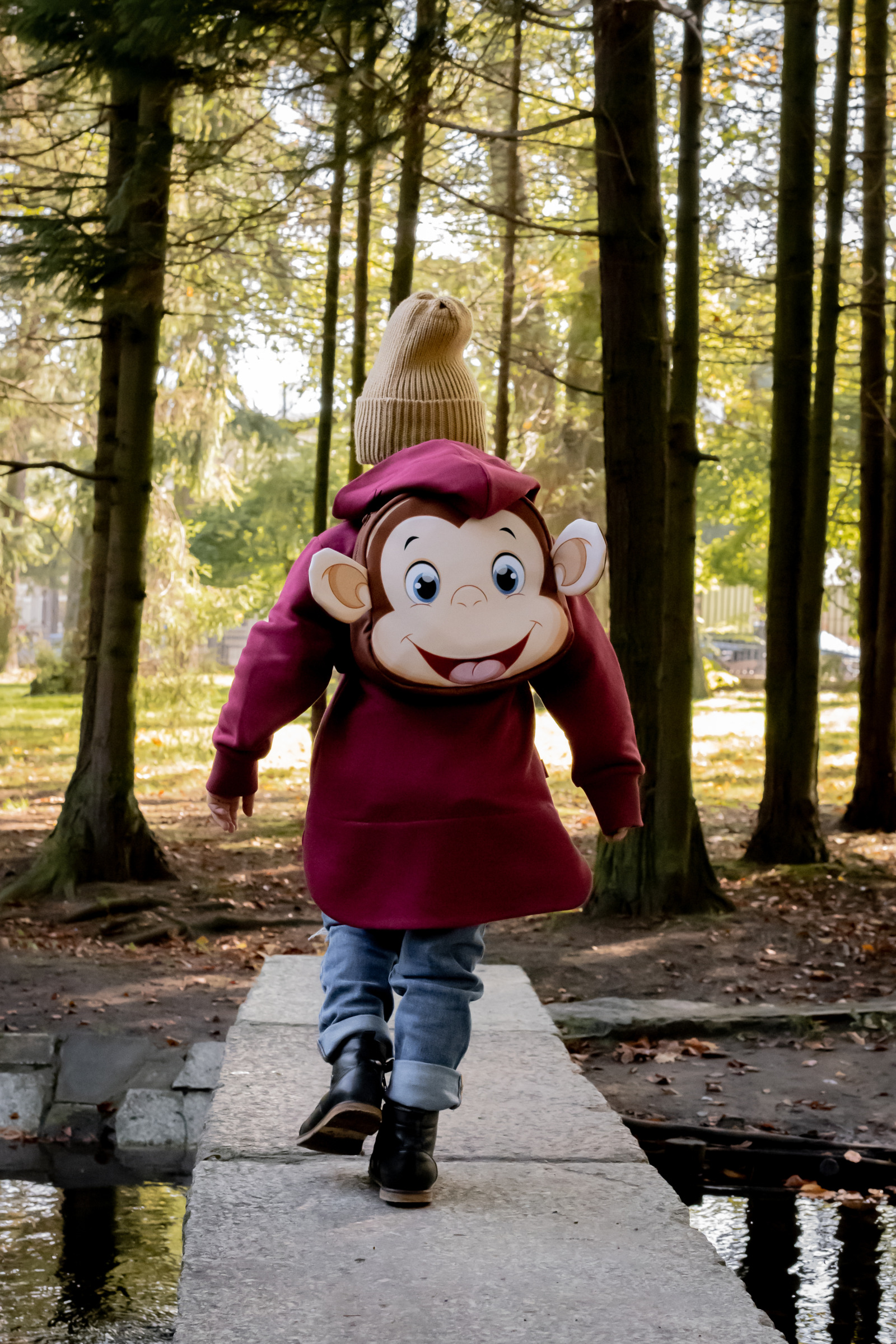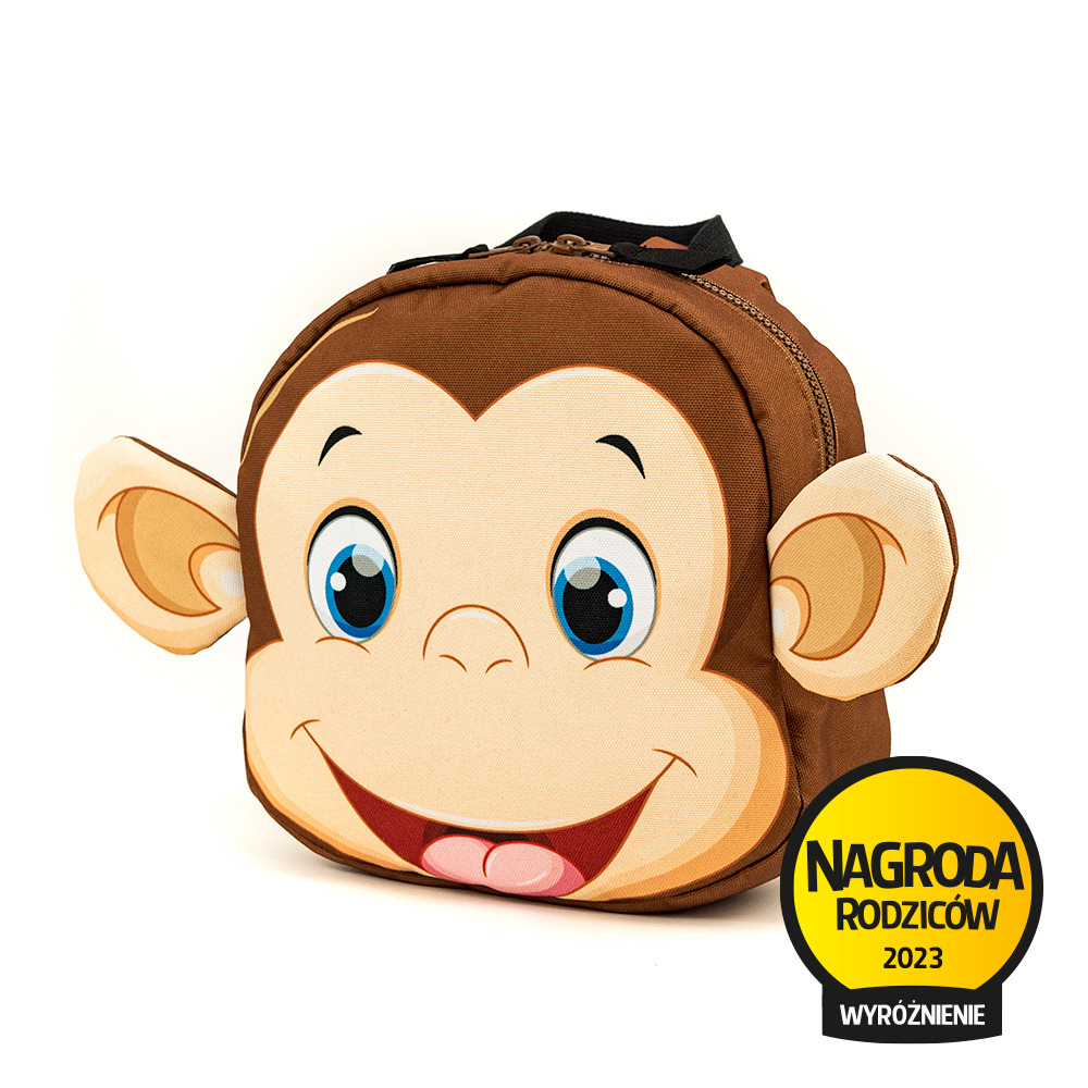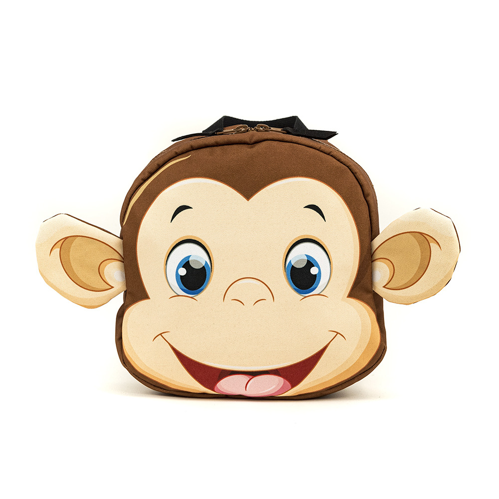 A small kindergarten backpack with monkey ears for preschool boys and girls.
