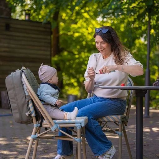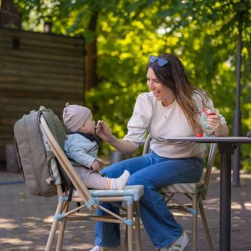 When using the Minimeis child carrier; theBackpack attaches to the front of the MiniMeis with patented hooks, and smoothly rests at the back of the MiniMeis. Detach one hook, swing the backpack around and easily reach inside cleverly designed pockets for water bottles, smoothies or what your child might desire to keep them hydrated and at full speed. Open the back rest, flip out the child seat pad and attach the side-buckles to turn any park bench, cafƩ stool or similar into a comfortable child seat. 4 unique colors made to match your MiniMeis perfectly.