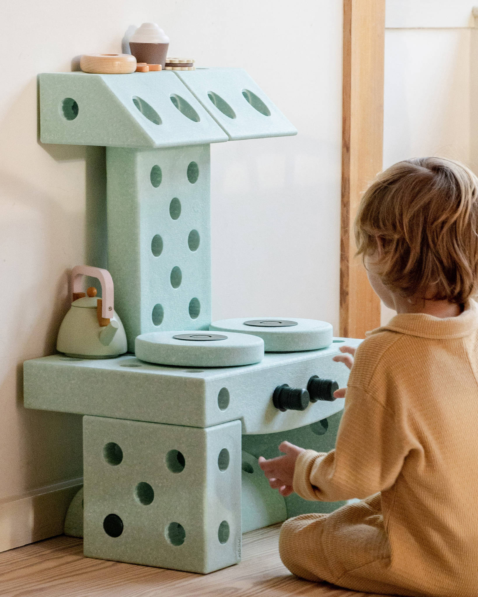 Ready to upgrade your rocking horse to a fun race car? MODU foam wheels are perfect for building more stable ride-ons and push toys. They may also provide hotplates for your play kitchen or records for your DJ desk. Attach them to the connector pegs in two ways: One side runs around freely while the other makes your creation buzz.