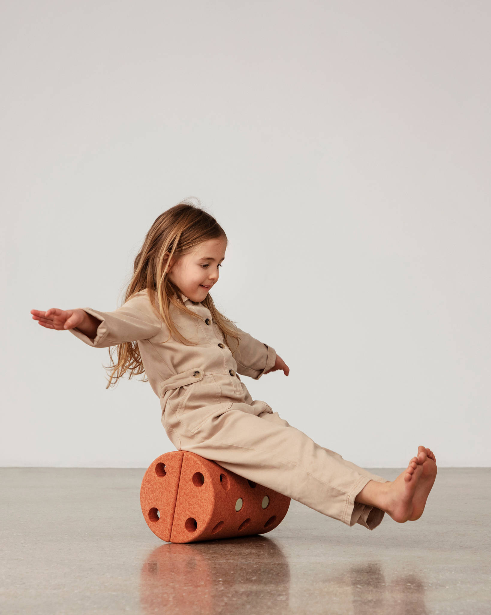 The Roller offers motor skill play for all ages. Do tummy time exercises with your baby. Increase core strength by rolling back and forward. Let older kids sit up straight to practice balance or rock from side to side. You can even combine the blocks to ‘walk the tightrope’ and build fun obstacle courses. When playtime is over, the Roller also works great as a small stool that's easy for kids to use wherever needed.