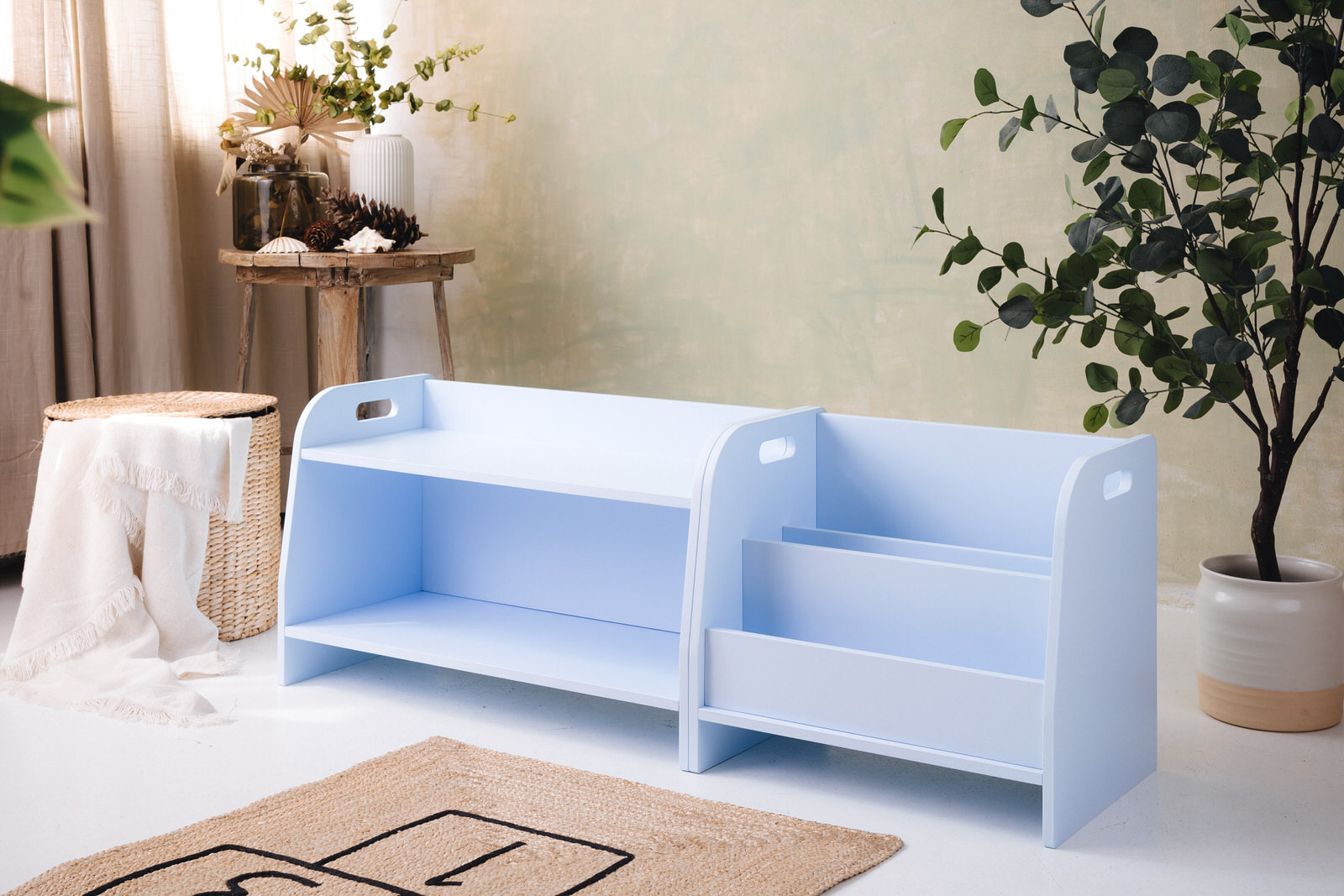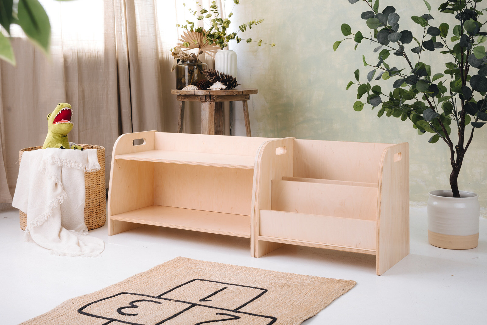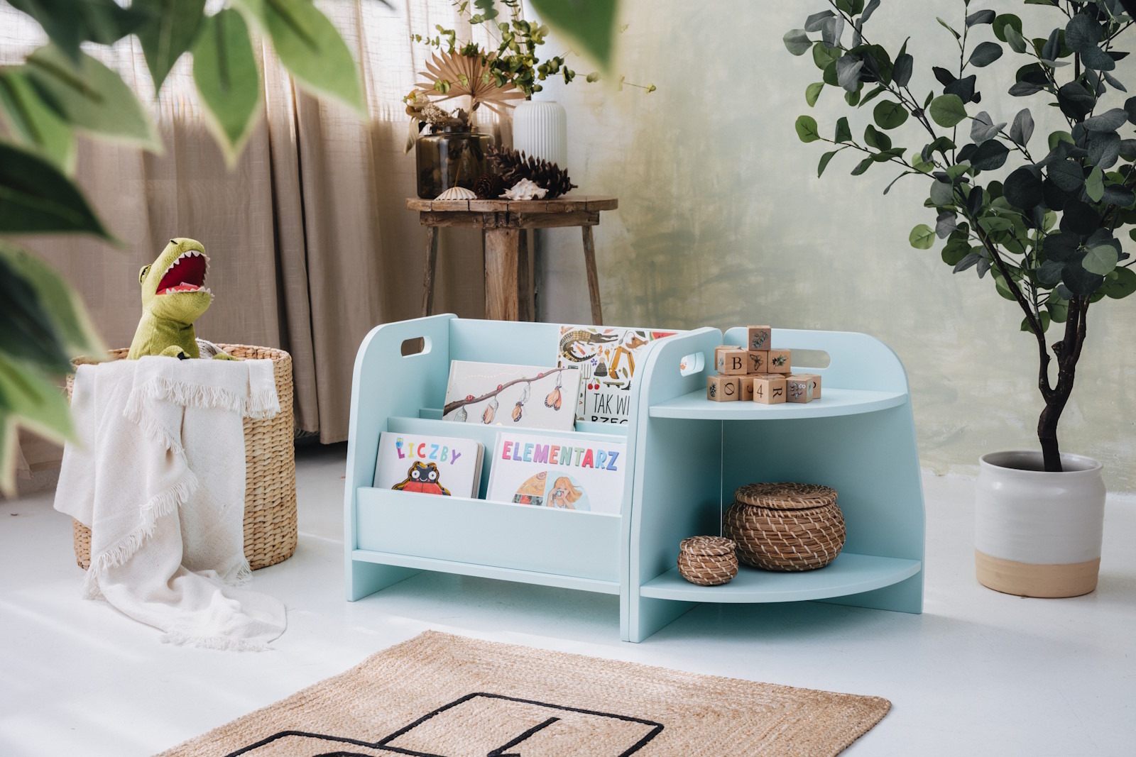 A children’s bookshelf in the form of an open and transparent bookshelf is the perfect choice for lovers of harmony and simplicity in interior design. According to the principles of the Montessori method, this piece of furniture is designed to support a child’s development. Even the way books are arranged with their covers facing forward allows young readers to make thoughtful choices in their reading material. Full access to the shelves and pockets from the floor level not only makes it easier to reach their chosen book but also encourages them to put it back in its place, teaching self-discipline and care for their own space.