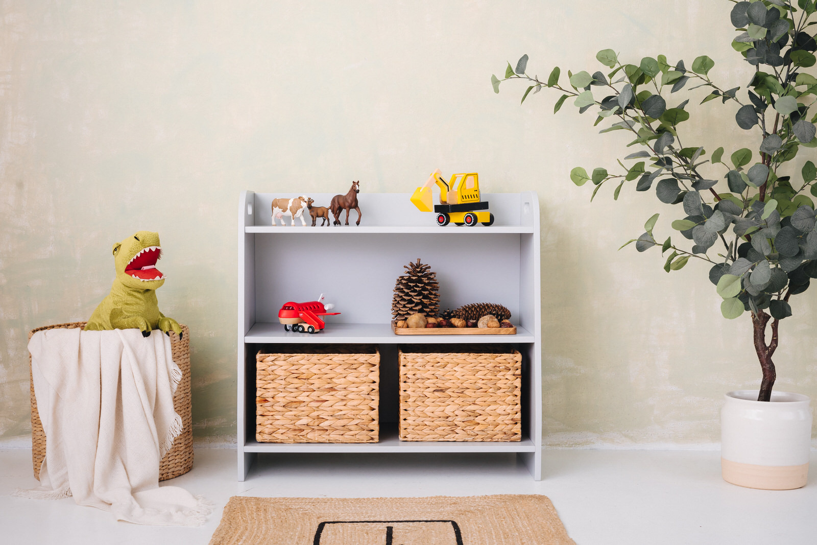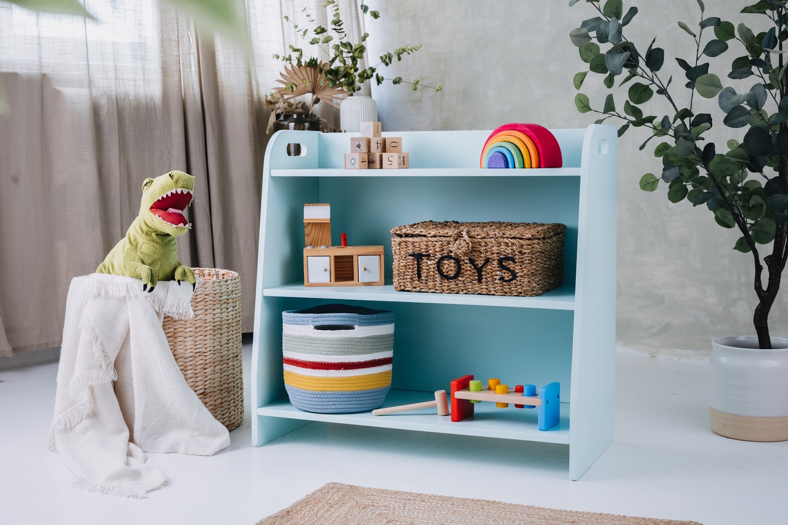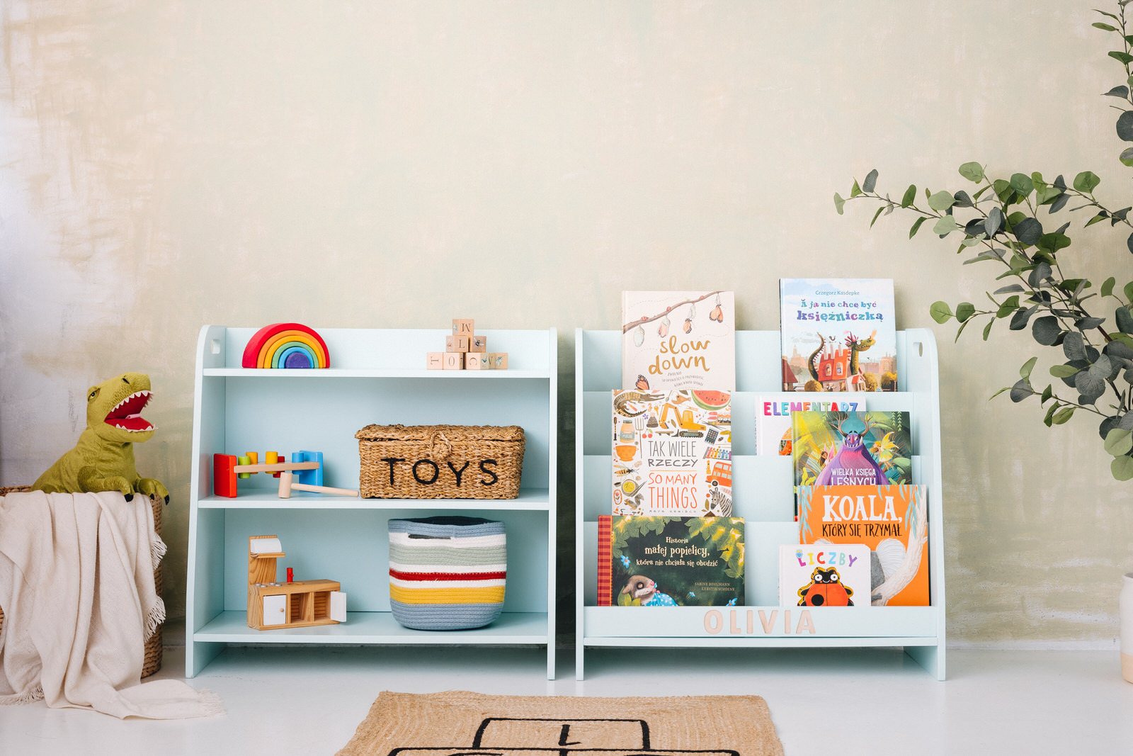 The toy shelf is handmade from 15mm thick plywood made from hardwood. It has been painted entirely with environmentally and child-safe paints and meets the requirements of the European standard PN EN 71.3, among others.