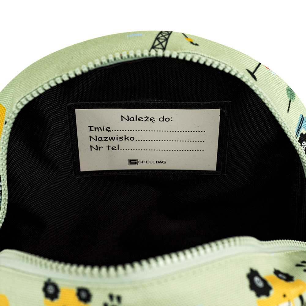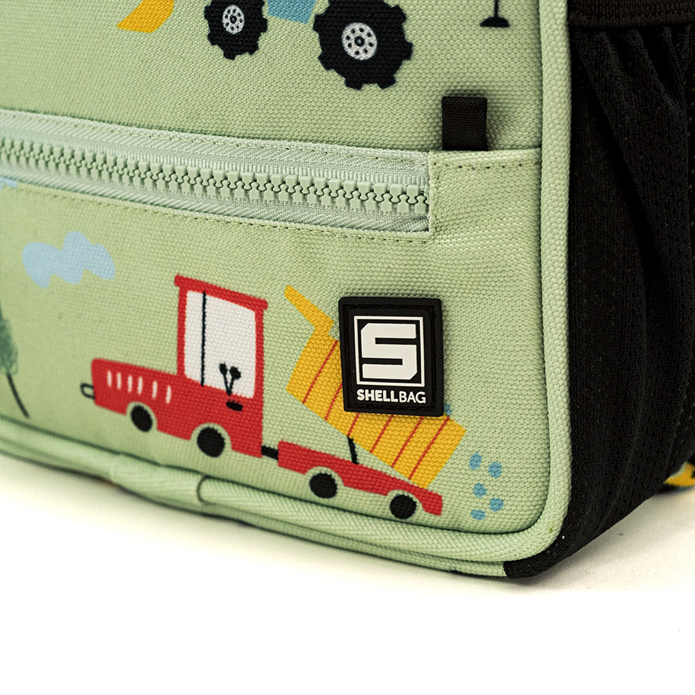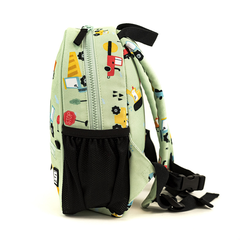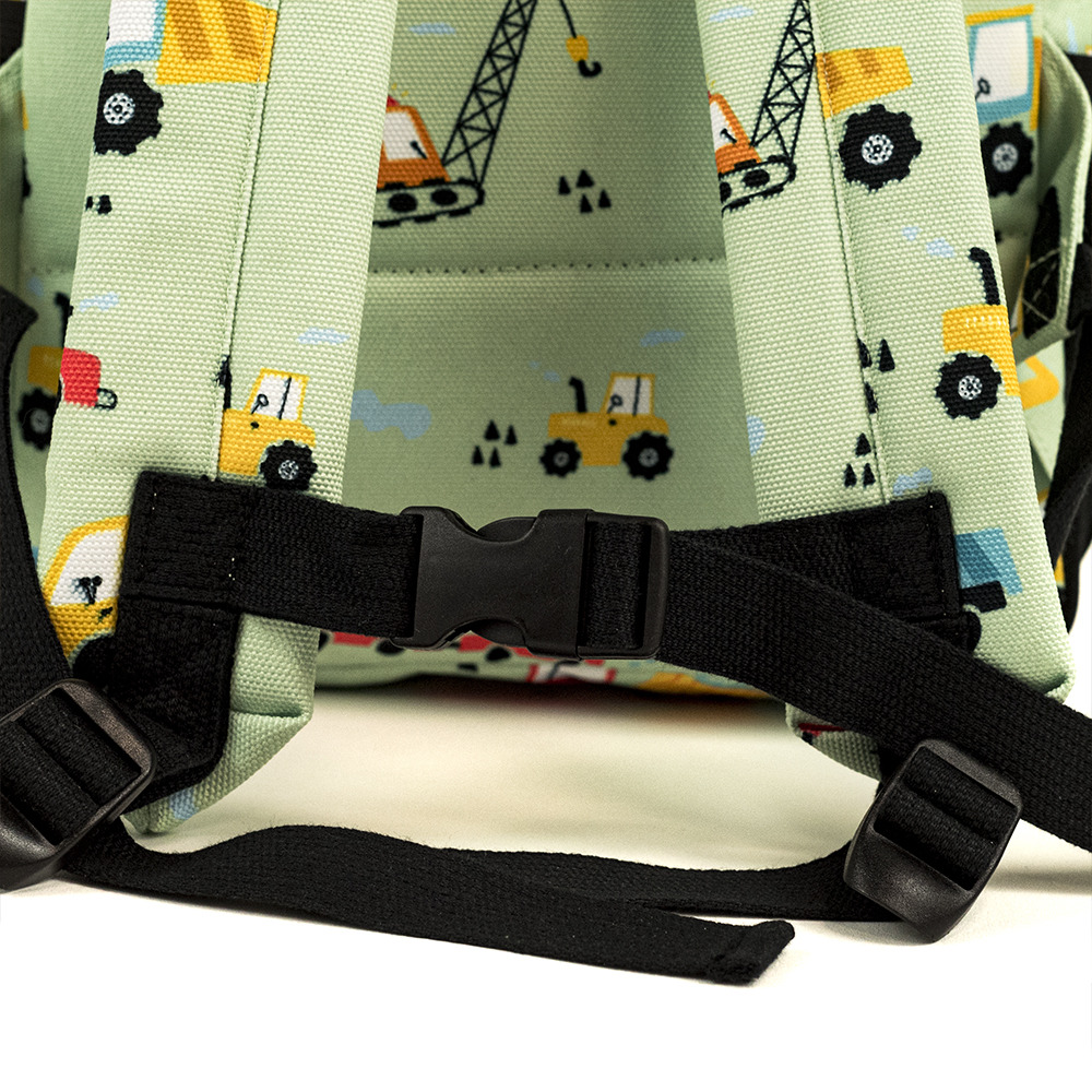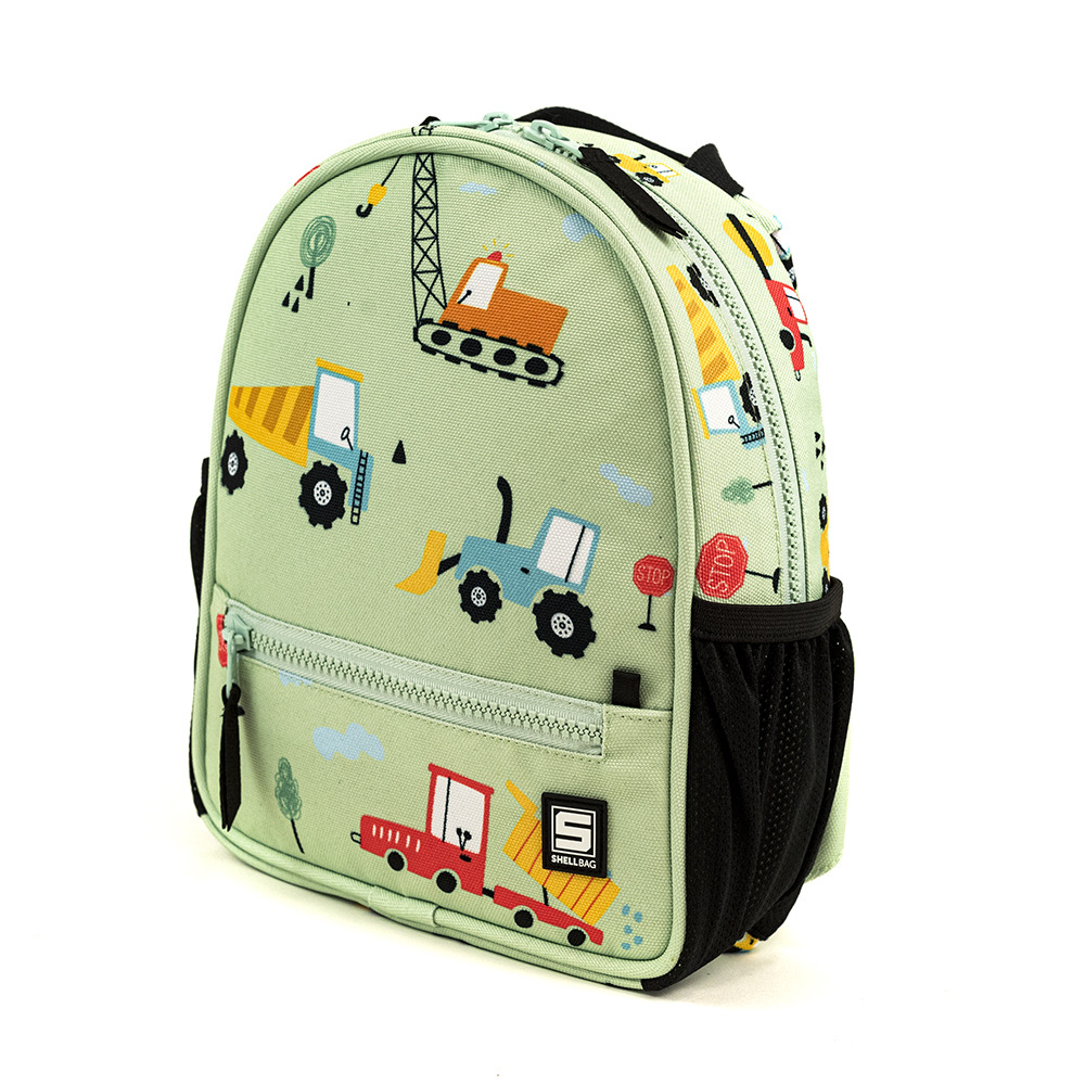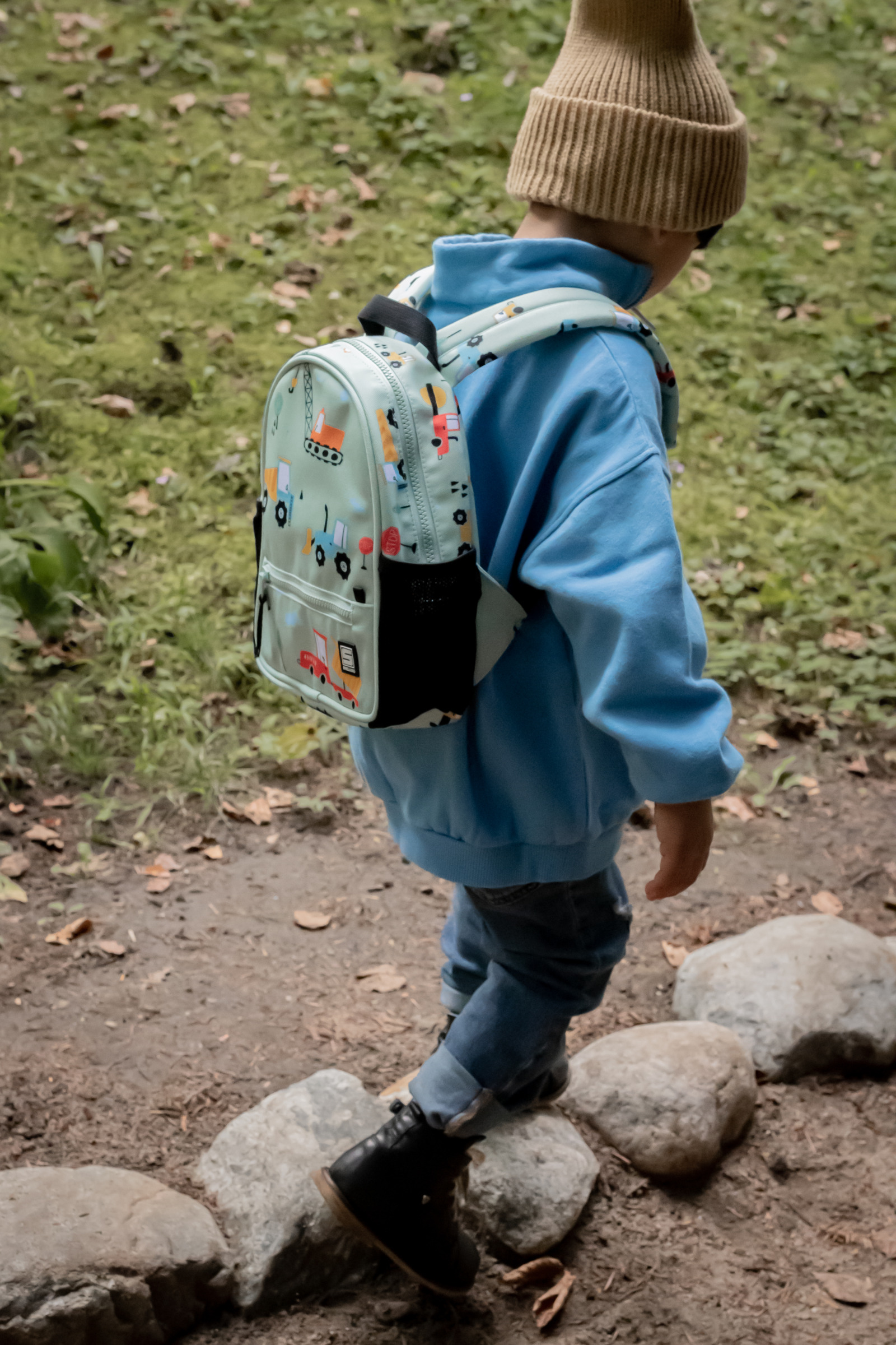 Backpack for kindergarten for children with graphics of construction vehicles.