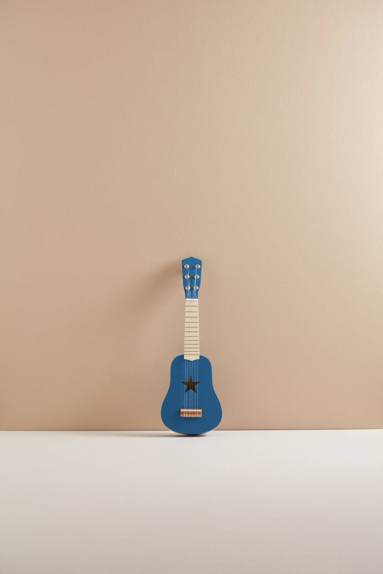 Wooden toy guitar with a star cut-out. Children love playing instruments and making sounds themselves. This guitar is also a lovely interior design element for your child's room or anywhere in the home to give it a splash of color instead of a cushion or picture. The strings can be stretched just like on a regular guitar. Perfect as a toy for children who love music or to help create an interest in music. Why not start a kid's rock band?