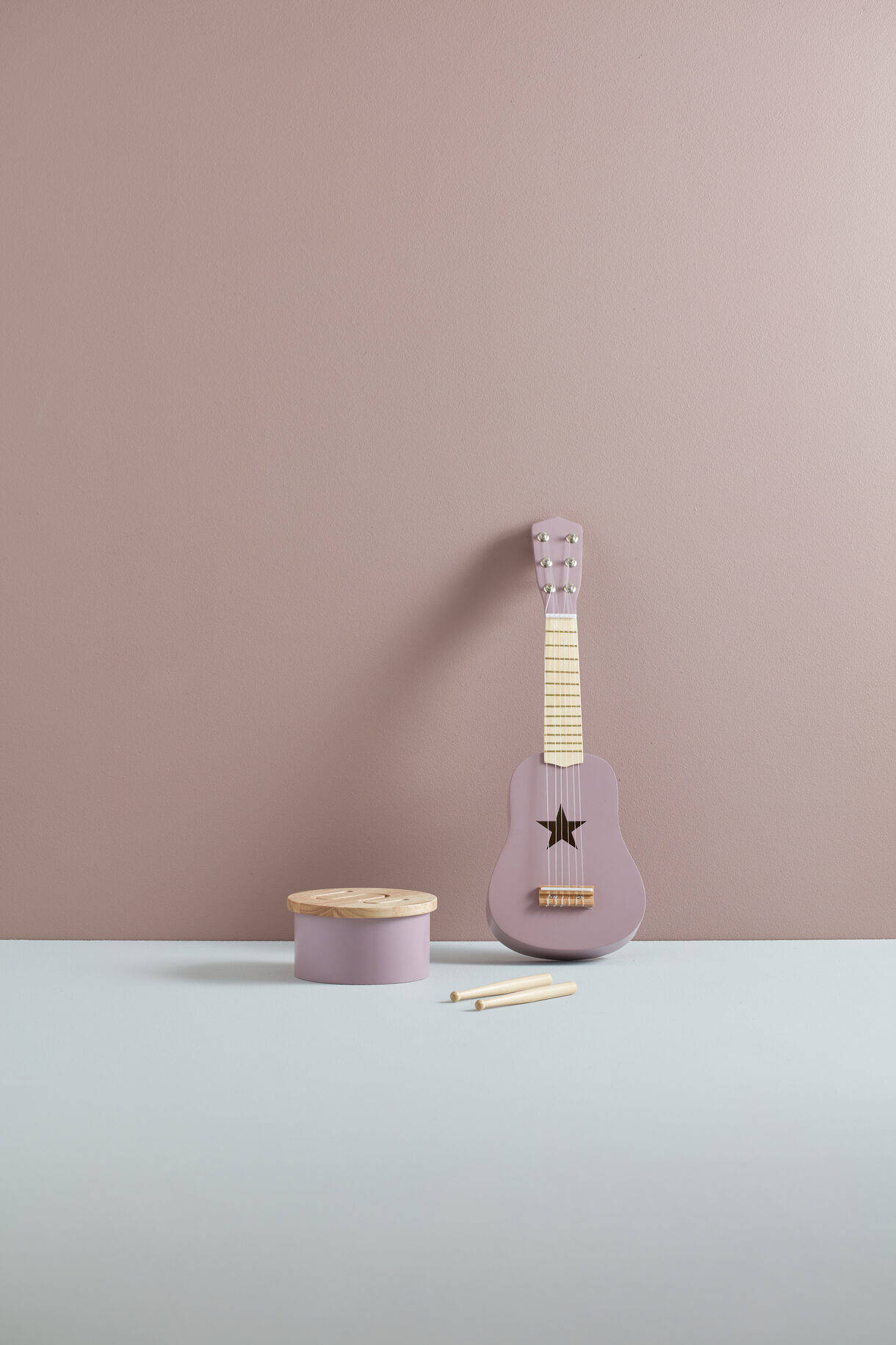 Wooden toy guitar with a star cut-out. Children love playing instruments and making sounds themselves. This guitar is also a lovely interior design element for your child's room or anywhere in the home to give it a splash of color instead of a cushion or picture. The strings can be stretched just like on a regular guitar. Perfect as a toy for children who love music or to help create an interest in music. Why not start a kid's rock band?