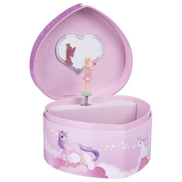 Where better to store children's jewelry than in this jewelry box with a unicorn and a music box? The unicorn may be a mythical creature, but in this jewelry box design, it comes to life in a fantastic way with the melody of Beethoven's "Für Elise." The fairy dances gracefully in front of the heart-shaped mirror. The music box mechanism allows you to experience many beautiful moments. This treasure chest will be useful for any young lady. You can keep hairpins, hair ties, ribbons, or even earrings and rings in there, too!