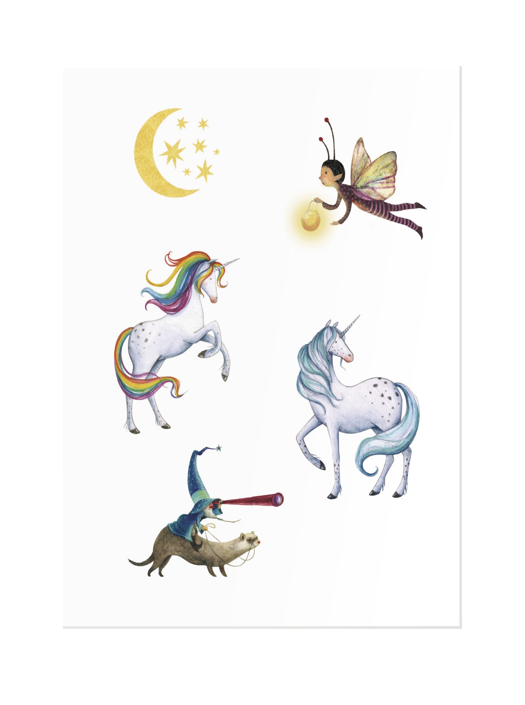Decorate your body with ten quality unicorn tattoos. Dermatologically tested. Perfect for a themed party and as a gift.