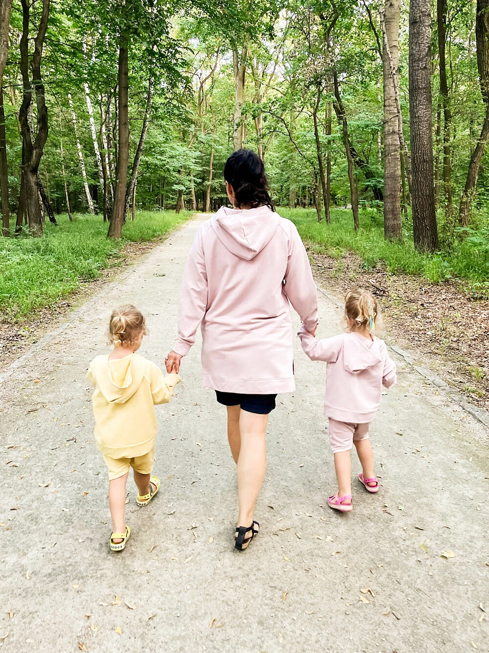 The hood protects against the wind, while the kangaroo pocket serves as a good hiding spot for mommy’s treasures. The pink hoodie, complemented with elements featuring folk stripes, is our summer must-have ā or is it just us reminding of a strawberry cocktail? With its extended cut, the hoodie can be worn as a dress or paired with leggings.