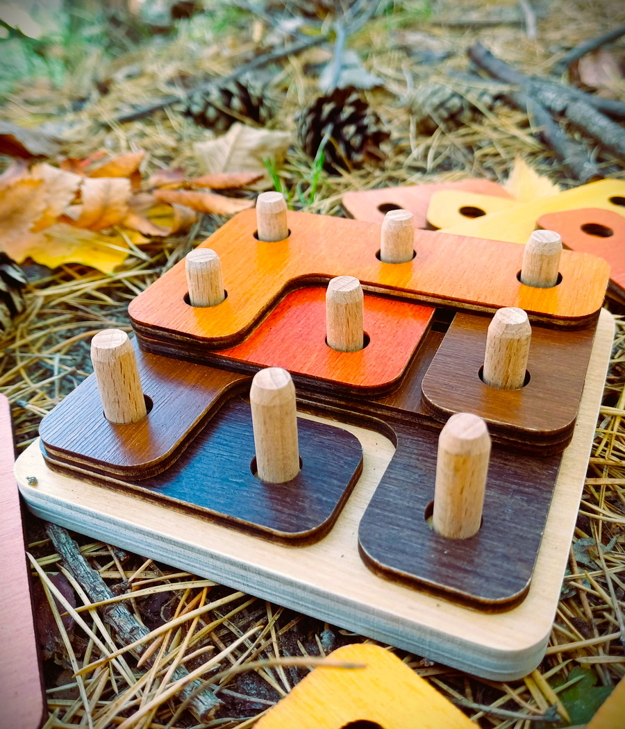 Stacking, matching, and threading are essential motor skills that every preschooler should develop. Precise hand, finger, and wrist movements play a vital role in everyday life and are the foundation for learning to write. The geometric tower allows children to improve these abilities by arranging blocks on a wooden board. Kids can sort them by colors, shapes, or simply create their own patterns. This toy encourages creativity, enhances coordination, and introduces the basics of color recognition.