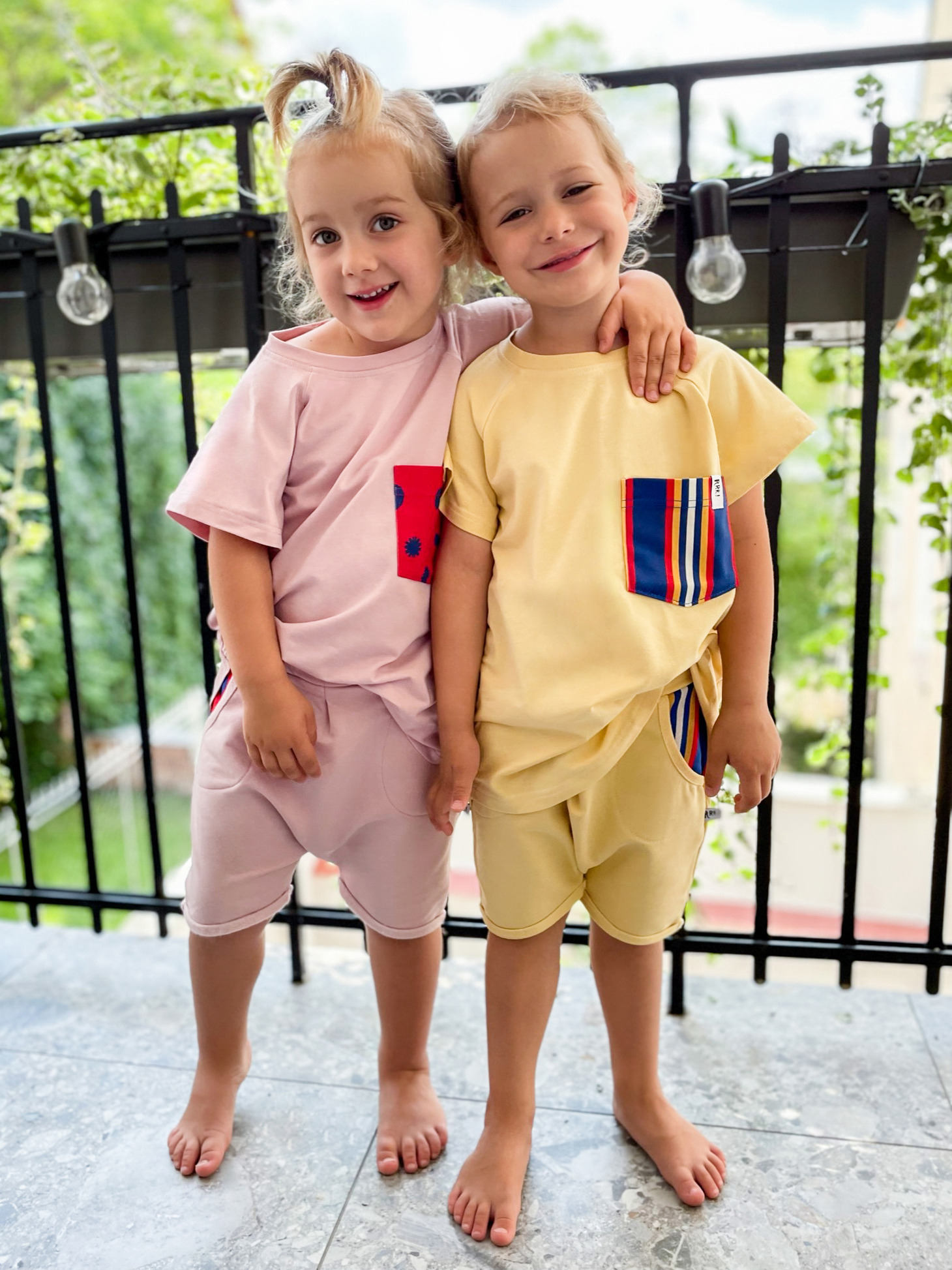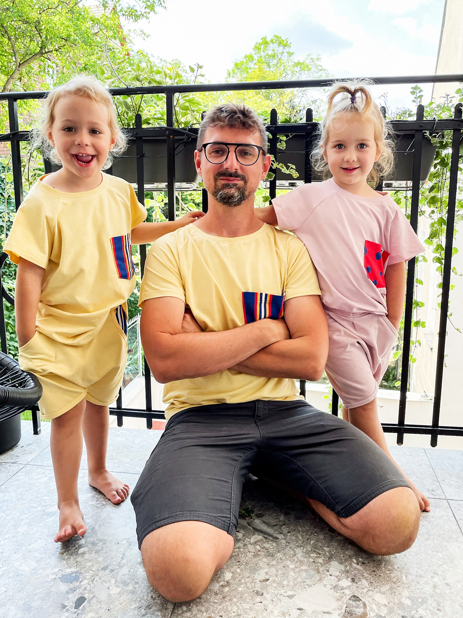 There's no summer without pastels! The yellow t-shirt with a milky touch evokes the most beautiful holiday memories: sun, sand, and long warm evenings filled with fun. Completed by a contrasting pocket featuring a folk-inspired stripe pattern, it will become a favorite highlight of both the child's and parent's summer wardrobe.